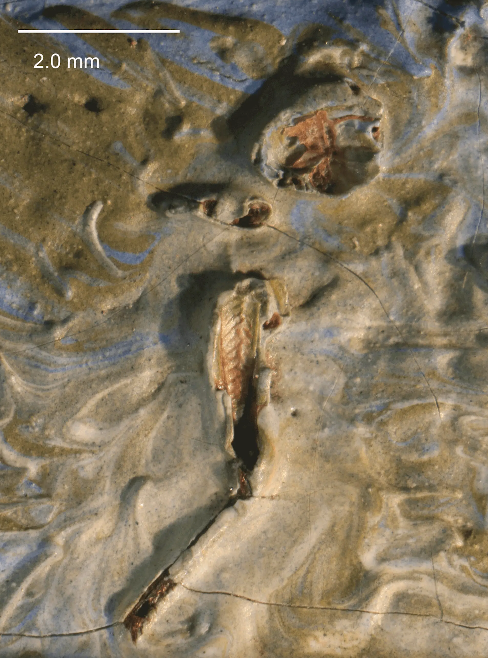 Photomicrograph of an insect walking through the paint, a detail from Van Gogh’s Olive Grove (July 1889). Courtesy of the Kröller-Müller Museum, Otterlo (photomicrograph: Margje Leeuwestein)