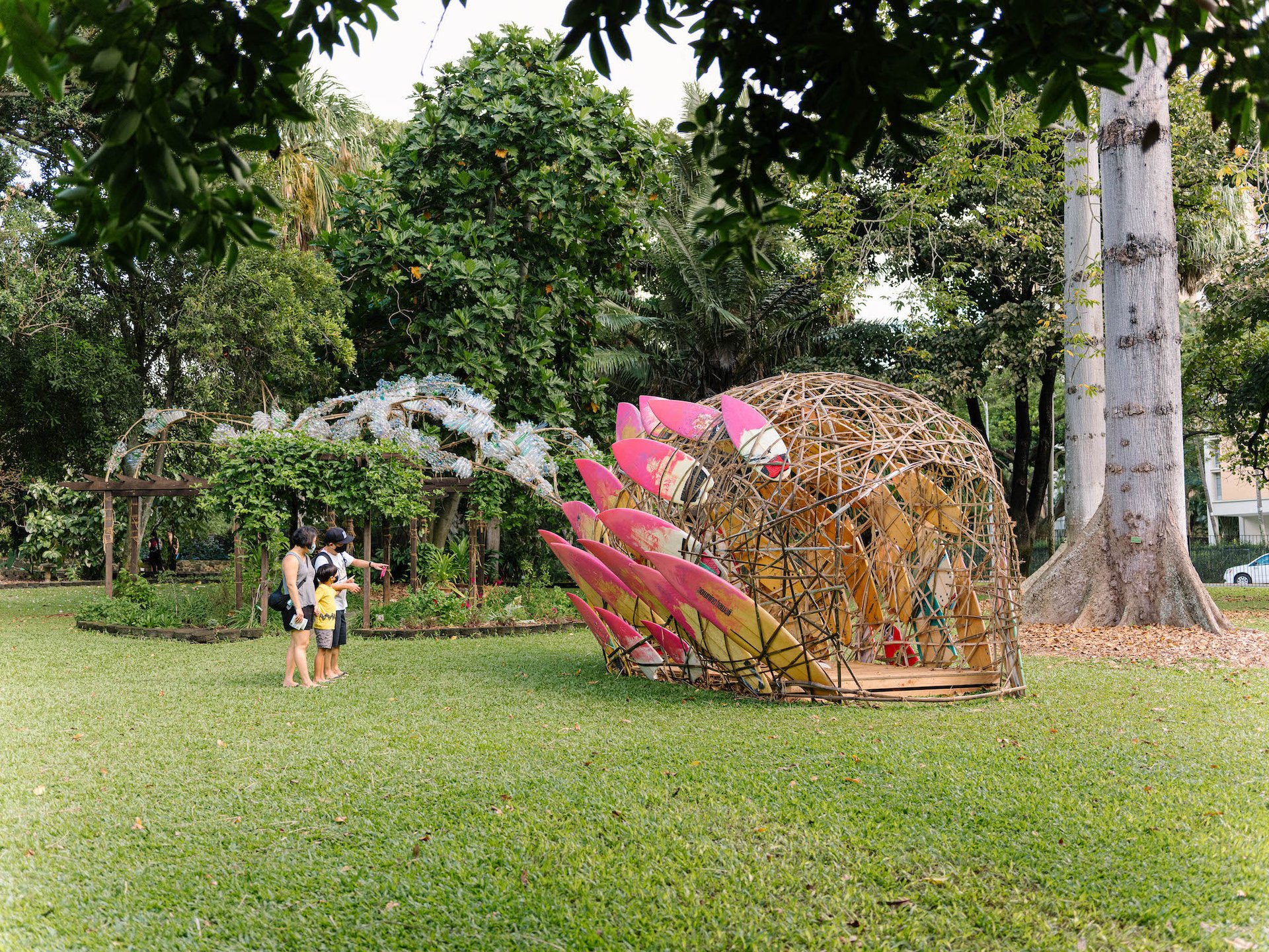 Leeroy New, Taklobo, 2022, at the Foster Botanical Garden Credit: Photo courtesy of Hawai‘i Contemporary, photography by Kelli with an Eye Photography / Kelli Bullock Hergert
