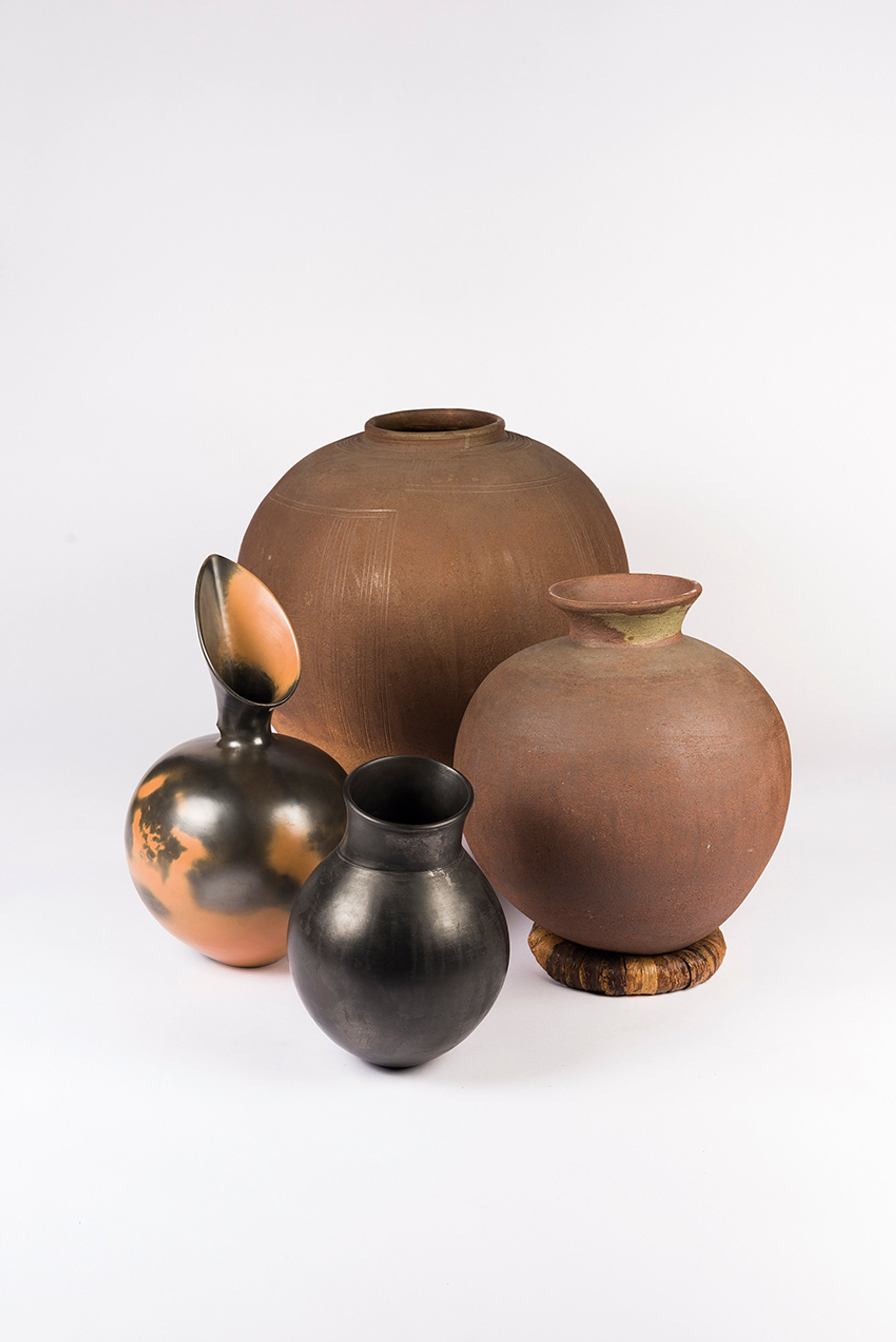 It’s hand building but it’s actually a very sculptural process. They are literally carving from the lump of clay and building up the wall. The Gwari don’t work with small rolls of sausage clay, they literally carve the clay out, make the vessel, and then later on when the piece is maybe a foot and a half tall, they just gouge a piece of clay and roll with a little bit in their hand. Like them, I wanted to be able to connect with the inside and outside of the walls of the clay that I was creating. I wanted to be thinking with the clay and it felt like a spiritual need to find that my soul, my eyes, my head were all working, trying to make form, trying to understand form, intellectually as well as physically. Then the way the Gwari people make the work is also very much like a dance, because the material, the clay, is static, it’s on a base and they walk around it. And it’s almost like they are dancing around this vessel that they’re carving. And then when they get to the rim, they really move fast, so fast that they’re spinning. So you imagine that they’re the wheels and they’re spinning. It’s very sculptural but it’s also that notion, that idea that you are the wheel.
