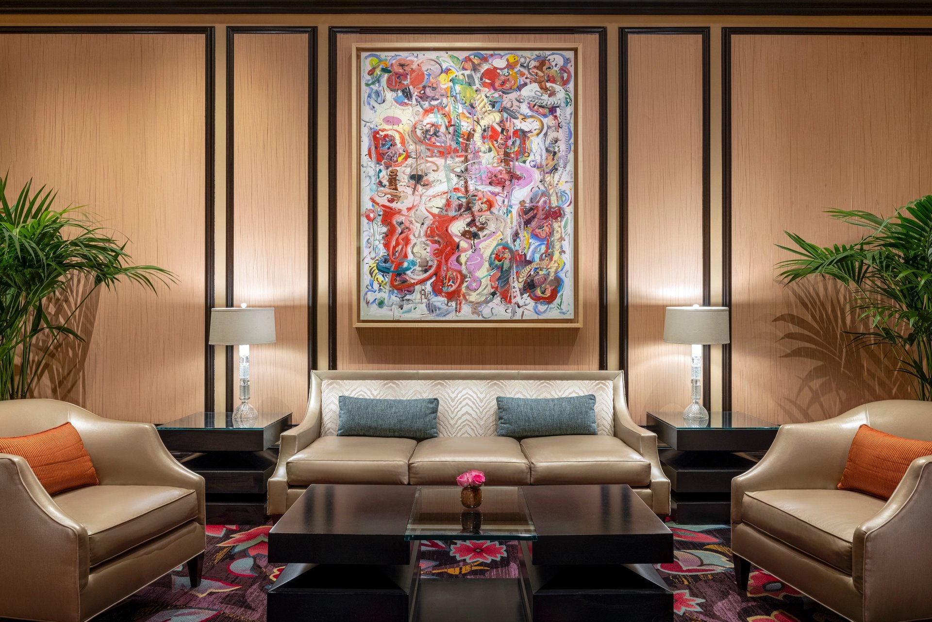 Some of the pieces joining the collection include a newly-commissioned painting by Adams from a series titled Floater that depicts Black figures leisurely floating in pools or bodies of water, which will be appropriately installed near Park MGM’s pool entrance, and three-dimensional paintings from Johnson’s Cosmic Slop series, monochromatic multimedia works made from black soap and wax, which will be hung in the Aria casino’s promenade level.
