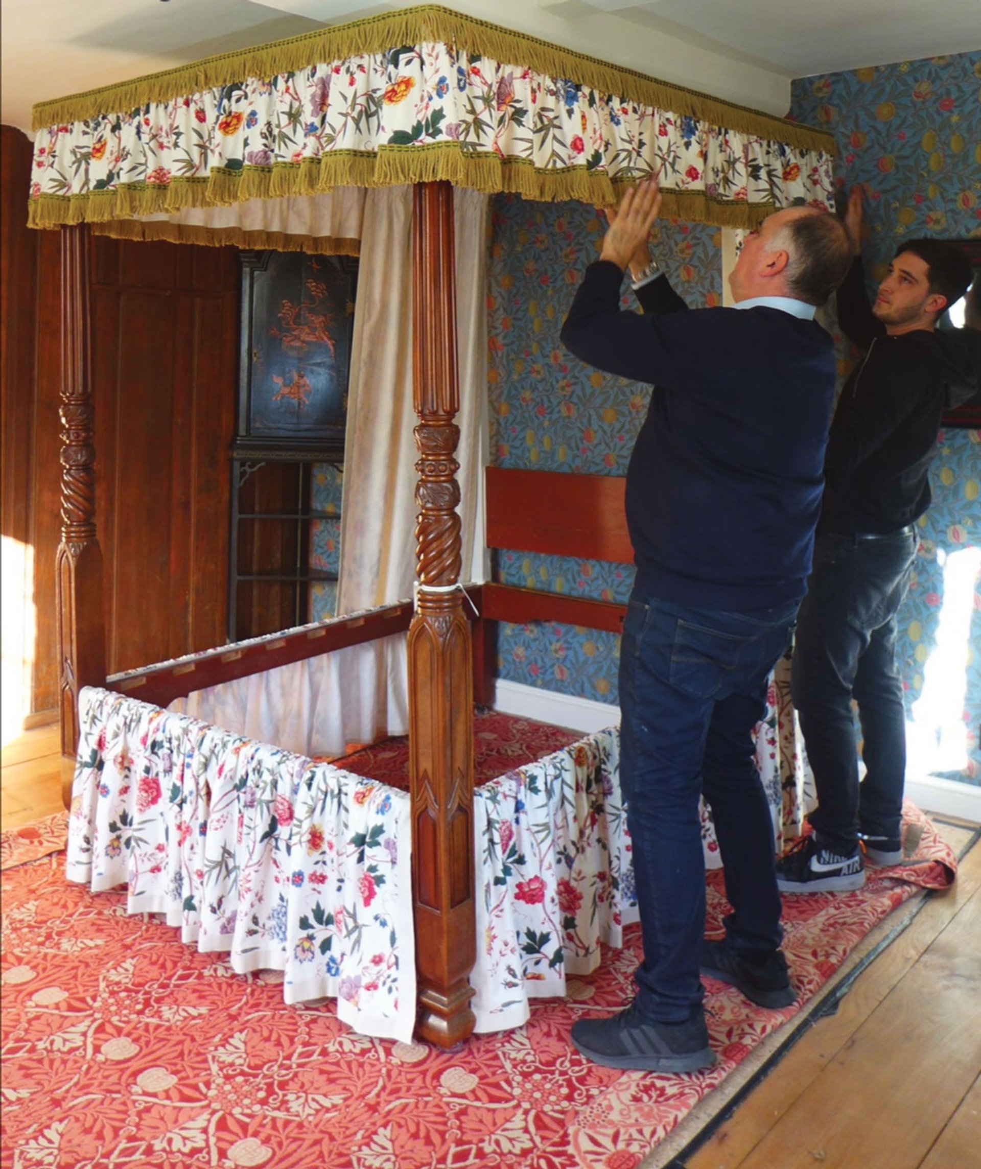Late 19th-century photographs of Jane Morris's bedroom helped the team to recreate the chintz hangings on the four-poster bed Photo: courtesy of the Society of Antiquaries of London (Kelmscott Manor)
