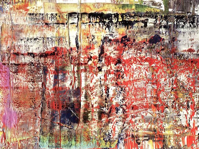 Richter uses lacquer to make small paintings of distinct colours flowing and partially mingling on sheets of glass. These lacquer-on-glass paintings are perhaps the artist’s most beautiful art, combining pure colour and entropic forces of mixture and separation. These have the quality of cut and polished stones, similar to Richter’s “dragged” abstracts made with squeegees. These dragged abstracts are the most numerous of Richter’s paintings in the period covered in the present volume; he produced only a handful of blurred photograph-style paintings in the 2010s. There is a dramatic reduction in the artist’s output following 2017: 2018 saw the production of two works; three works were made in 2019. All three 2019 pieces were variants of pre-existing designs.
