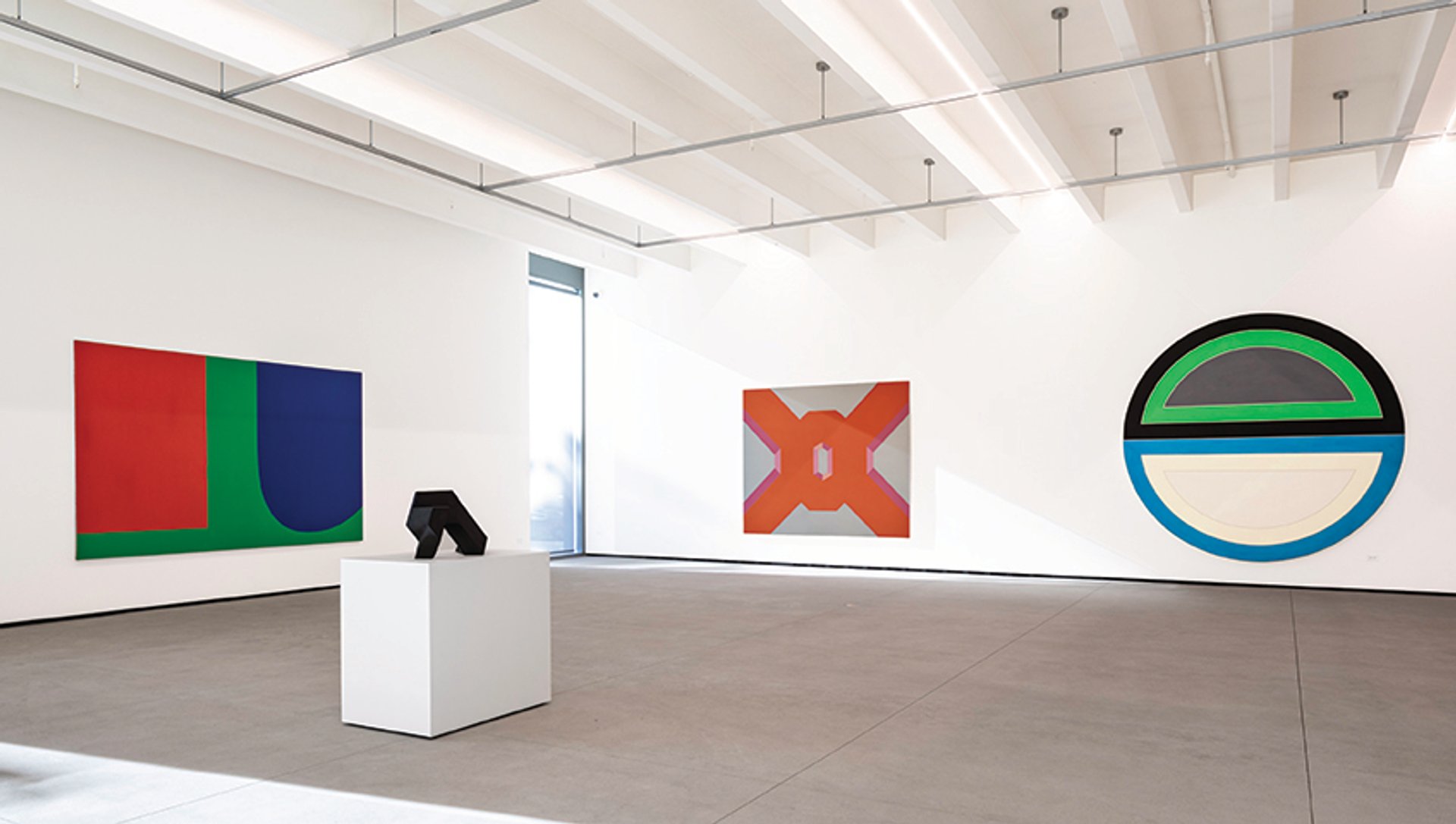 Miriam Schapiro’s Big Ox #2 (1968), centre, sits in a spacious gallery with Minimalist works Photo: Nicholas Venezia; courtesy of Selldorf Architects