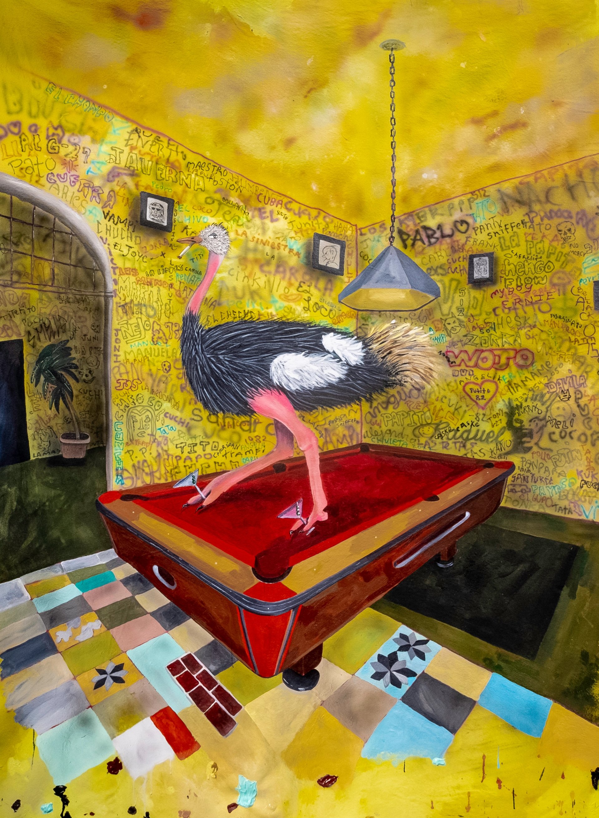 Radamés Juni Figueroa, El Avestruz de Bayamon en El Batey tomando martinis (2022) Courtesy Embajada, San Juan, PR