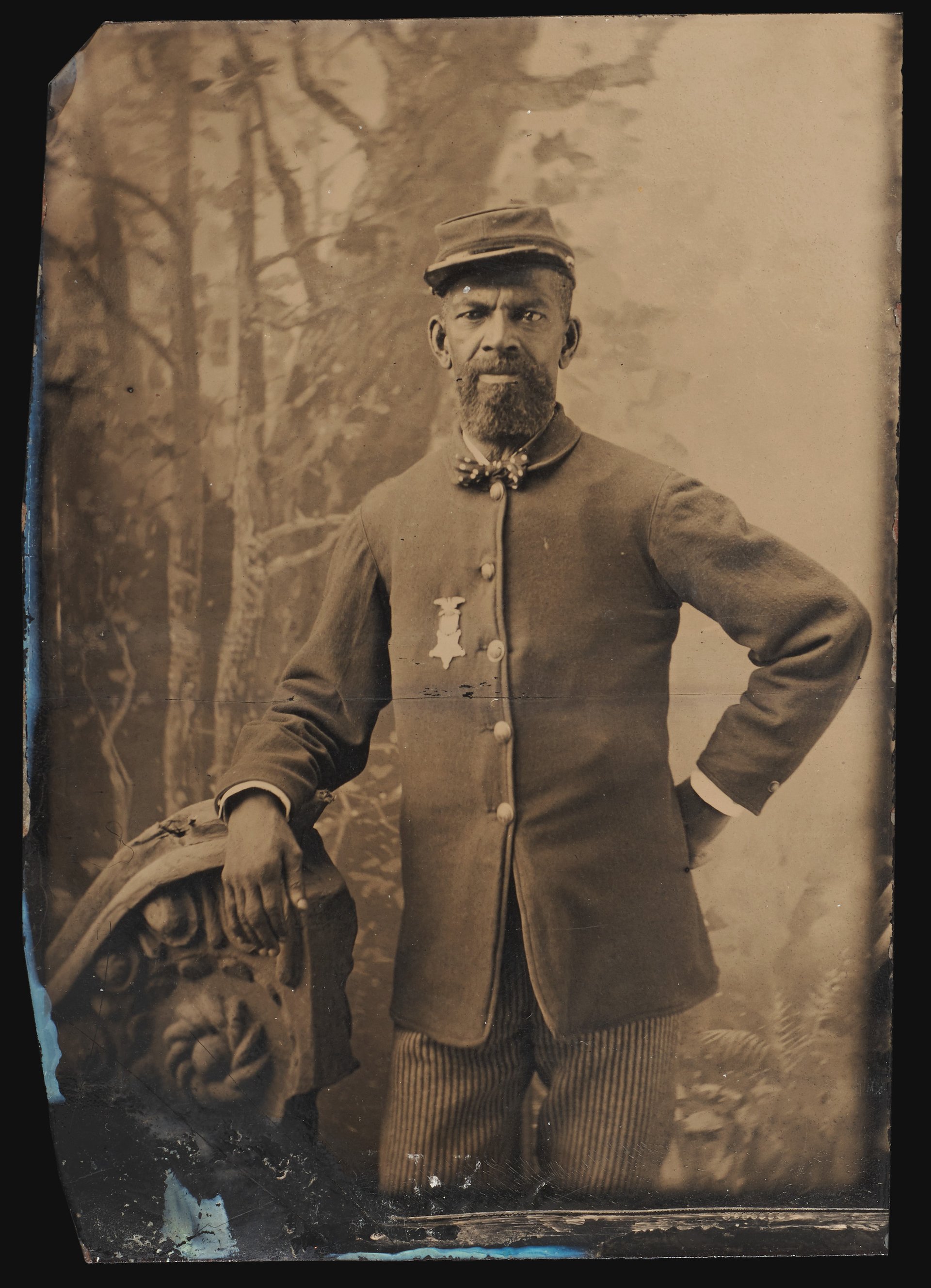 Unknown artist, Portrait of a Civil War Veteran Wearing a Grand Army of the Republic Medal, around 1866-70, tintype Clark Art Institute, Gift of Frank and Katherine Martucci, 2021