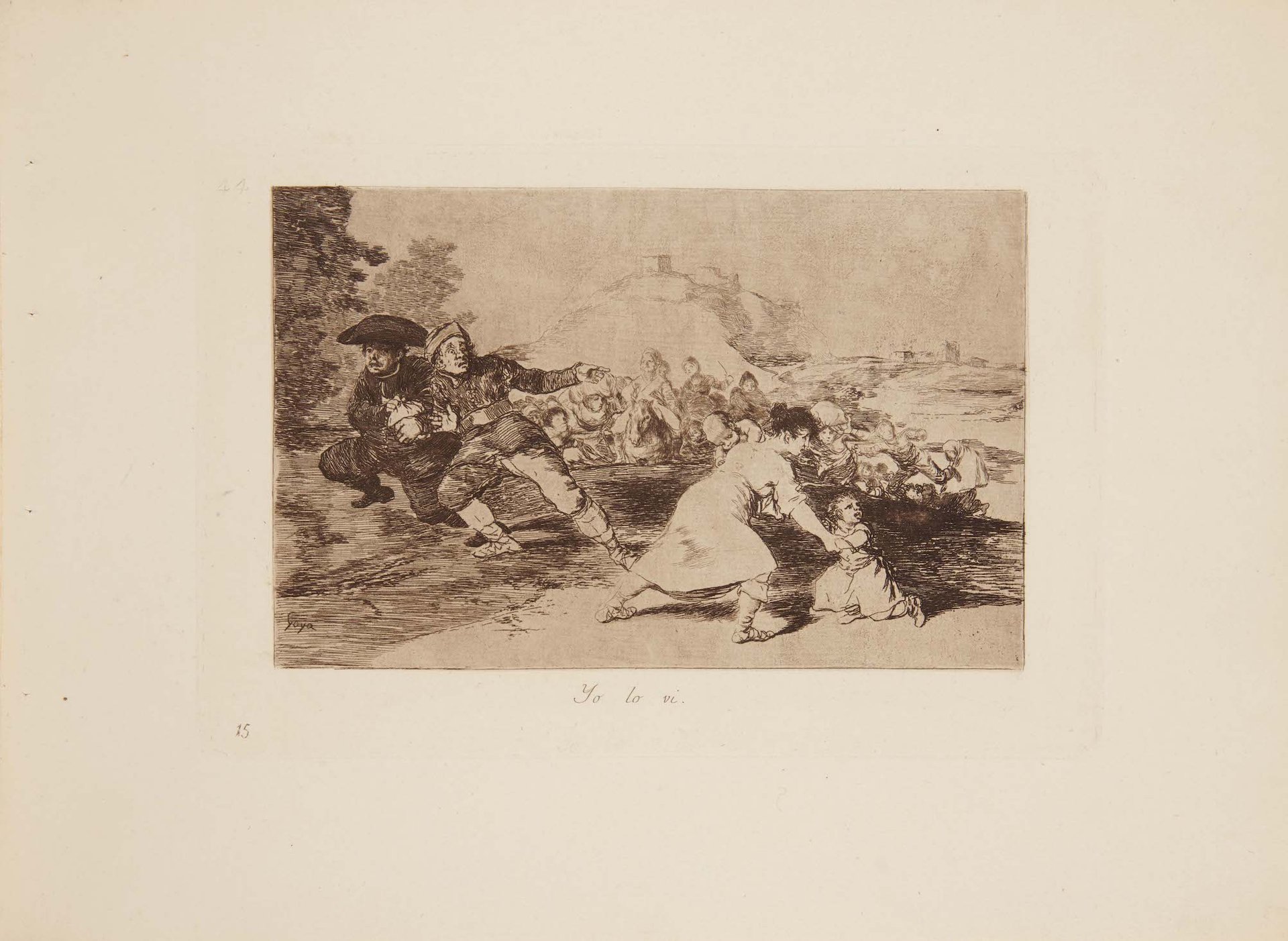 In another, I Saw It, Goya depicts a clergyman running off with a bag of coins, dragging away a uniformed man, while a woman and her young child are left defenseless. His series depicts the despair, dark emotions and echoes of violence in wartime. “Most of the images tend to be retrospective,” says Leonard, “a product of reflection on the part of the artist rather than an immediate, unfiltered view.”