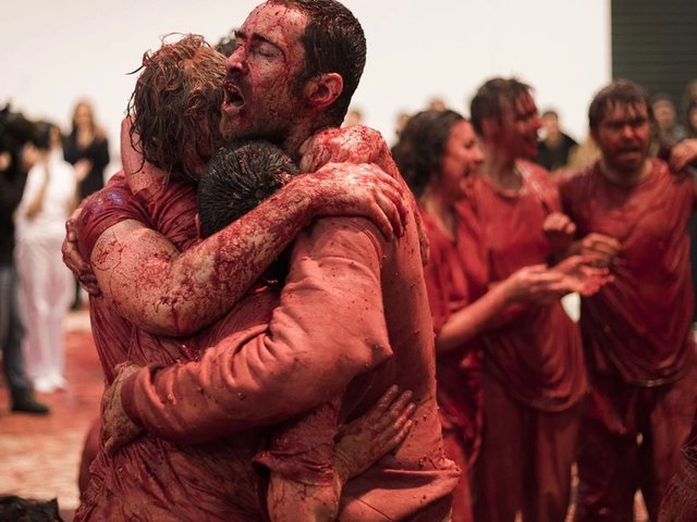 Some iterations of these performances included as many as hundreds of performers at a time, in addition to audience participation. Nitsch presented over 100 Orgies Mysteries Theatre performances throughout his life.