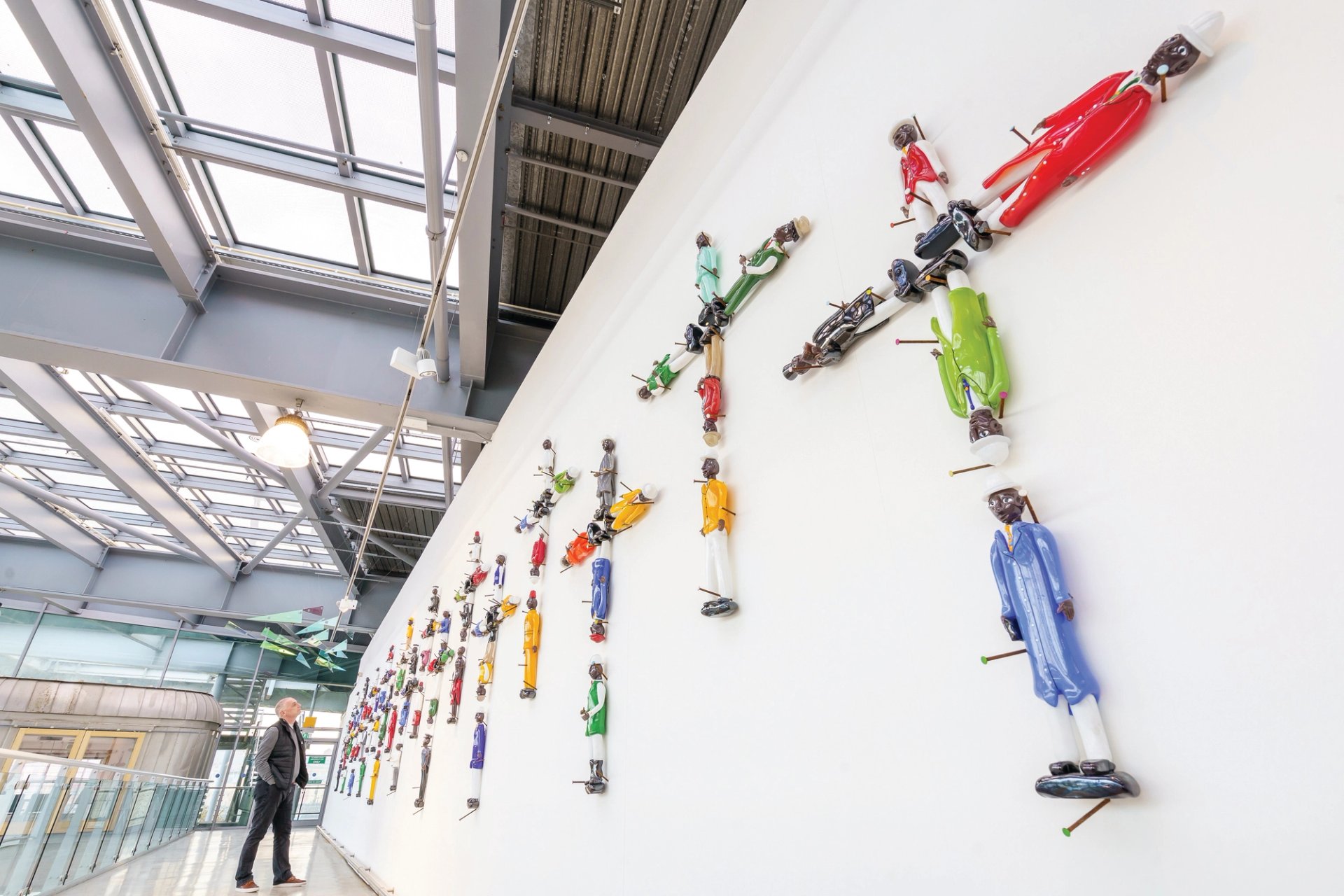 And Pascale Marthine Tayou’s Colonial Ghost, consisting of 12 Christian crosses each formed from five human figures held in place by prominent nails, first went on show earlier this year at Sunderland Minster. The ecclesiastical setting forcibly underlined this trenchant comment on the connections between colonisation and the growth of Christianity in African countries. But in their current setting of the National Glass Centre these doll-like figures, clad in their brightly coloured, incongruously contemporary clothes and uniforms, still pack a disquieting punch—especially in the knowledge that the region’s industrial wealth was in great part derived from its international trade in glass while also being inextricably combined with Britain’s expansion as an Imperial superpower
