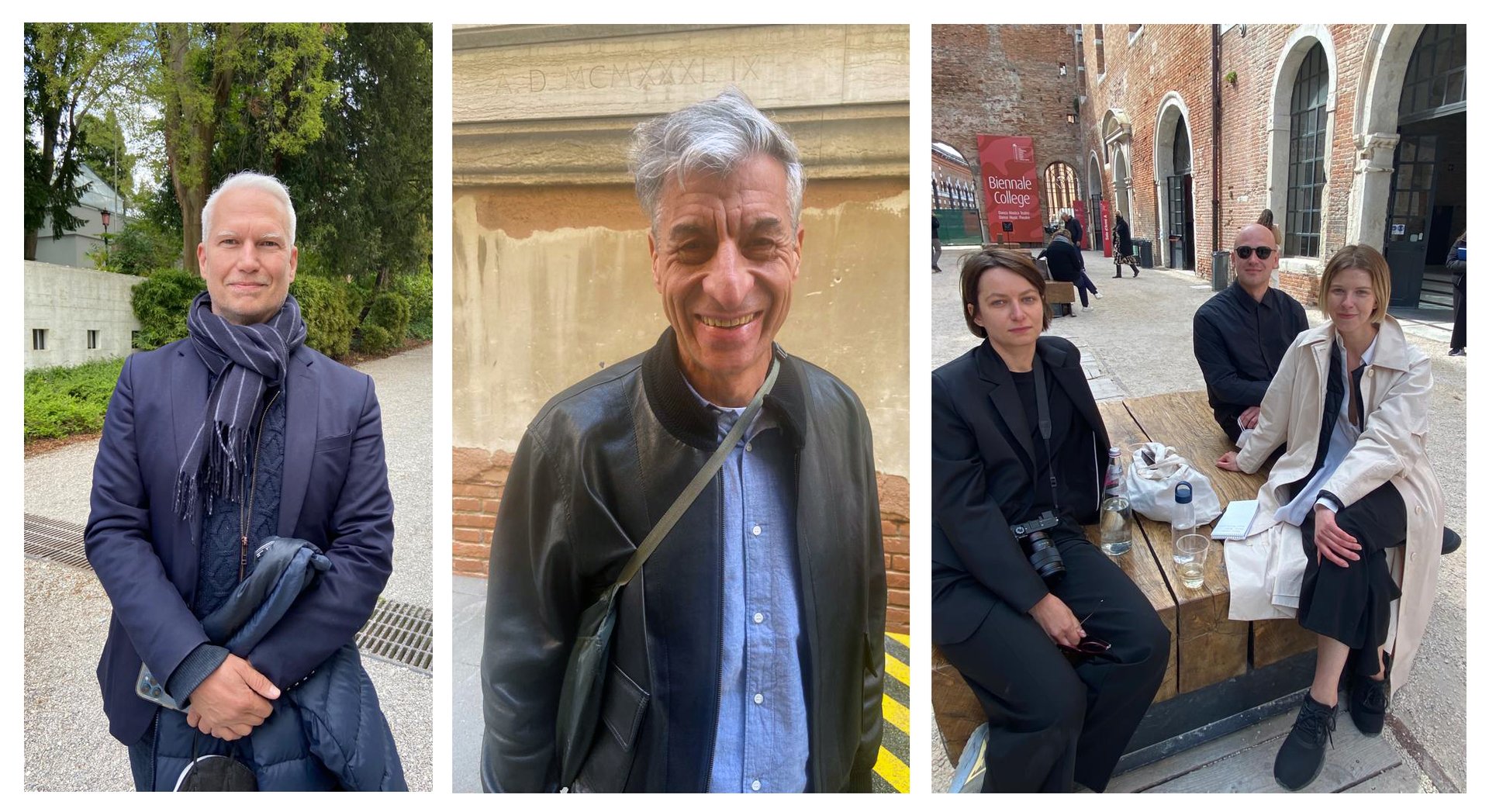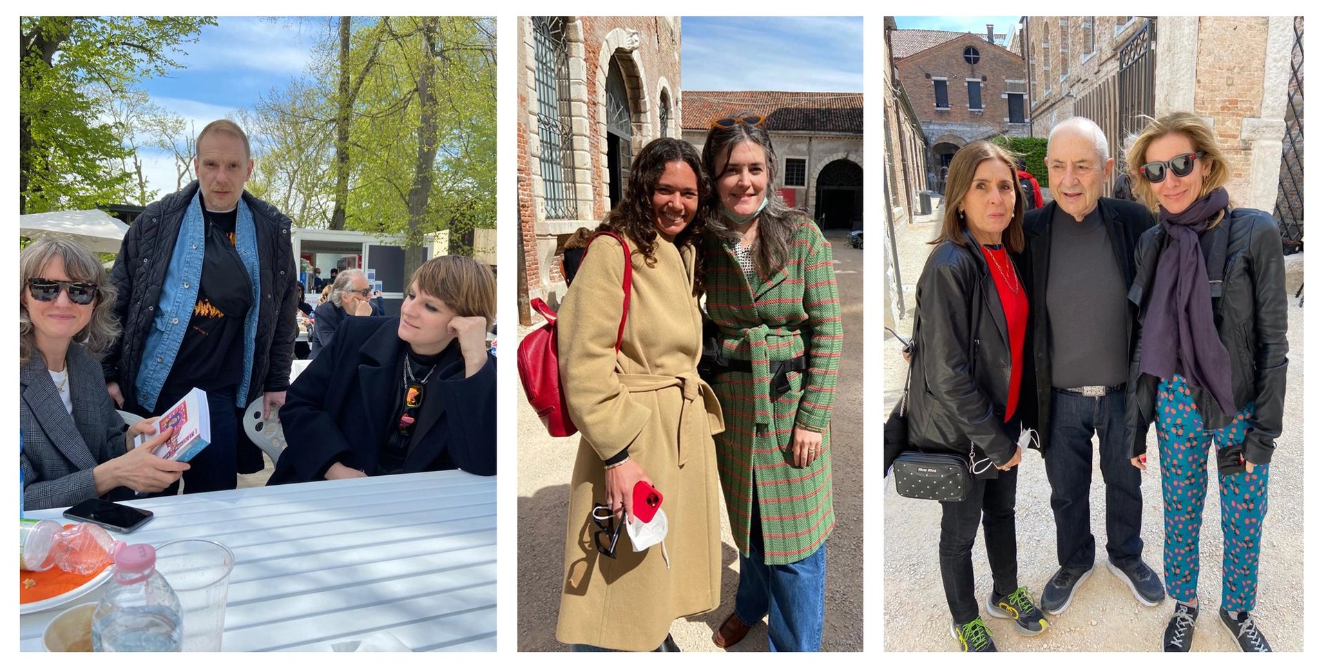 The Venice Biennale 2022: an art world reunion. From left: Klaus Biesenbach, artist Maurizio Cattelan, and the Ukrainian pavilion architects Iryna Miroshynykova and Oleksiy Petrov with the curator Maria Lanko Photos: Linda Yablonsky