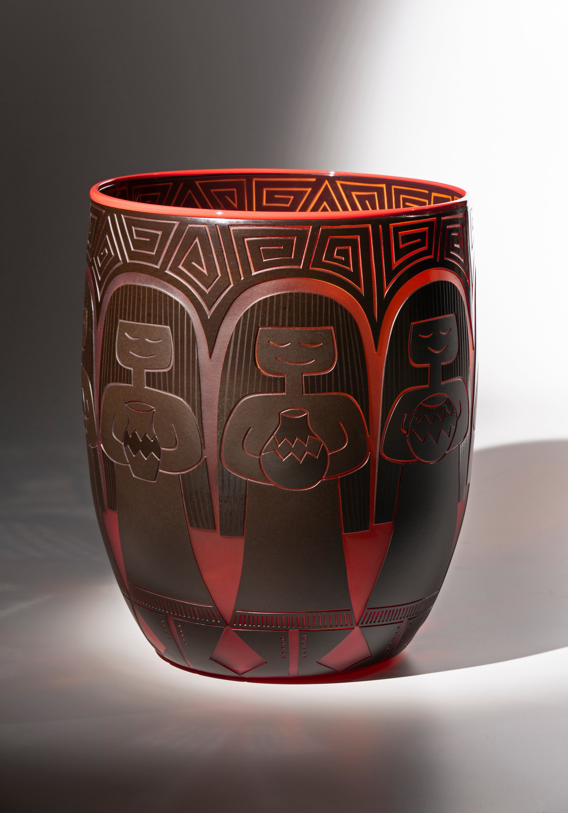 Chambers first recounted the story in a book that became the exhibition catalogue. “As I was working on the book, I realised that there was a larger story that could be told with the exhibit and that was how the Native students continued to use their iconography and designs—historical and traditional designs—as well as contemporary Native designs in their glass art,” she says.