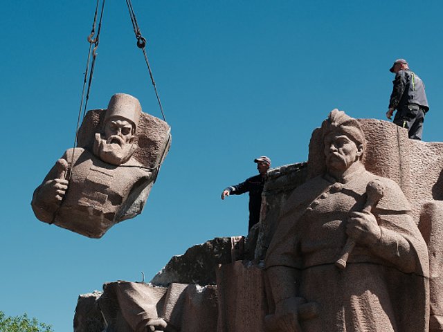 A monument of two workers commemorating the “friendship” between Russians and Ukrainians in central Kyiv has been dismantled in the wake of the war. The bronze sculpture, which shows the workers holding a Soviet order of friendship, stands beneath a giant titanium People’s Friendship Arch erected in 1982 to commemorate the 60th anniversary of the Soviet Union.