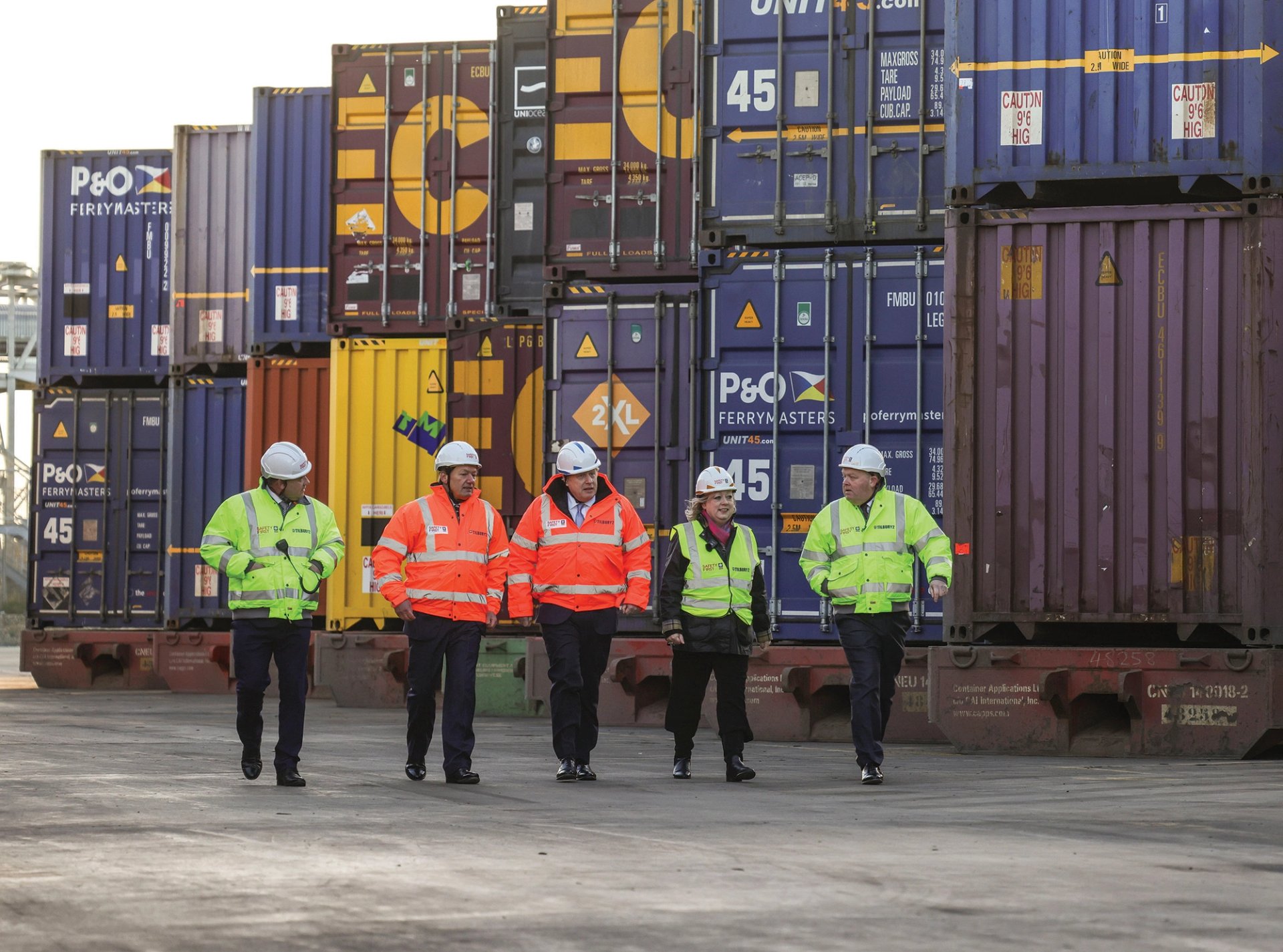 Prime Minister Boris Johnson visiting Tilbury Port. The demand for shipping exceeding supply has created a further headache for those buying and selling art Photo: Andrew Parsons/No 10 Downing Street; Crown copyright