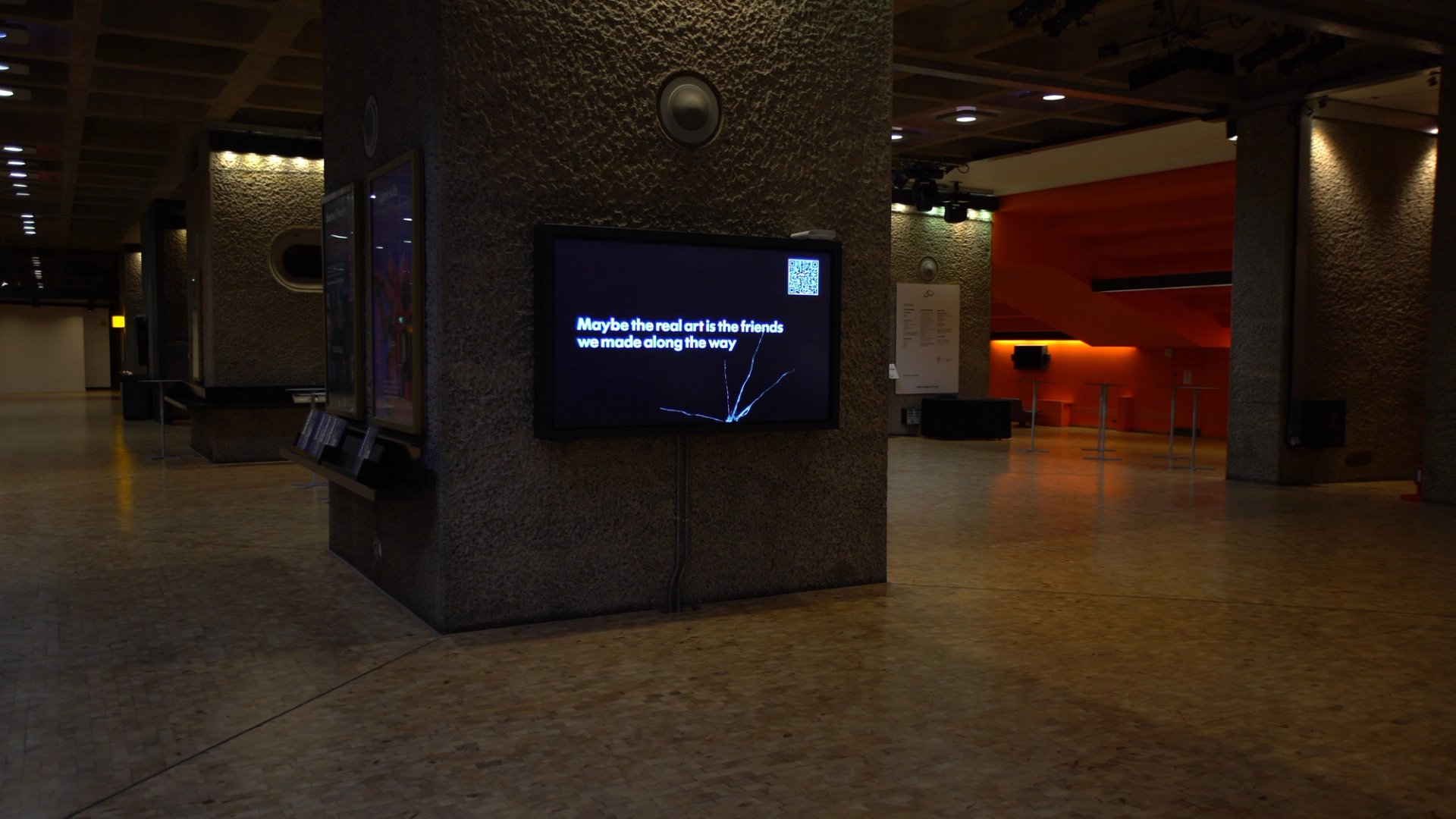 Information screens occupy a space between the art and the institution. They are usually just a mundane and didactic aspect of an art gallery. I wanted to use this as an opportunity to intervene in the experience of visitors who are probably at the Barbican to see a concert, film or another exhibition.