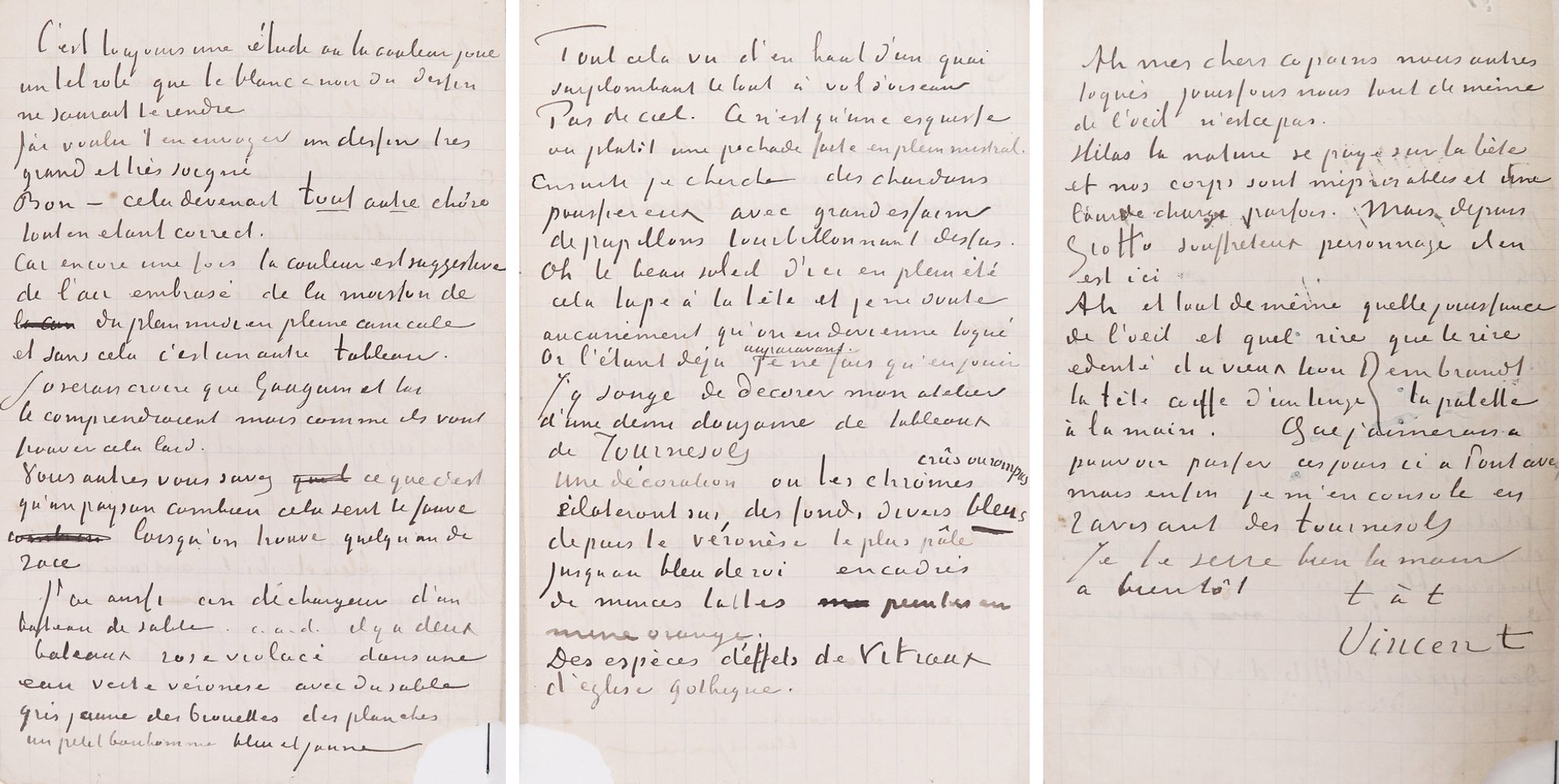 The second, third and final page of Van Gogh’s letter to Emile Bernard, around 21 August 1888 Credit: Collection of Anne-Marie Springer