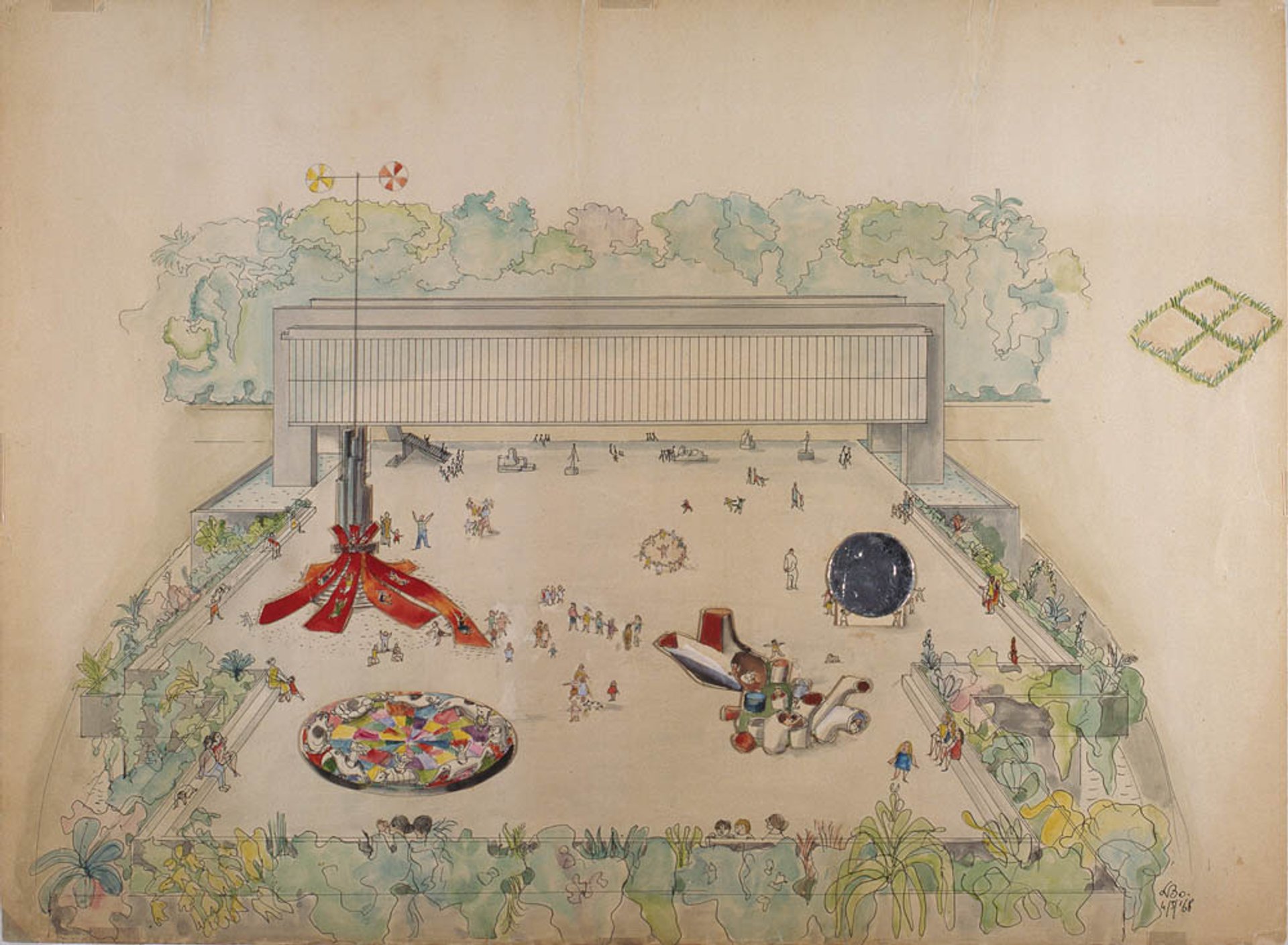 The Art Newspaper: The Nottingham Contemporary exhibition has as its point of departure an ink-and-watercolour illustration made by Lina Bo Bardi of an unrealised, huge-scale, fantastical playground in front of her Museum of Art in São Paulo. What’s the significance of this work?