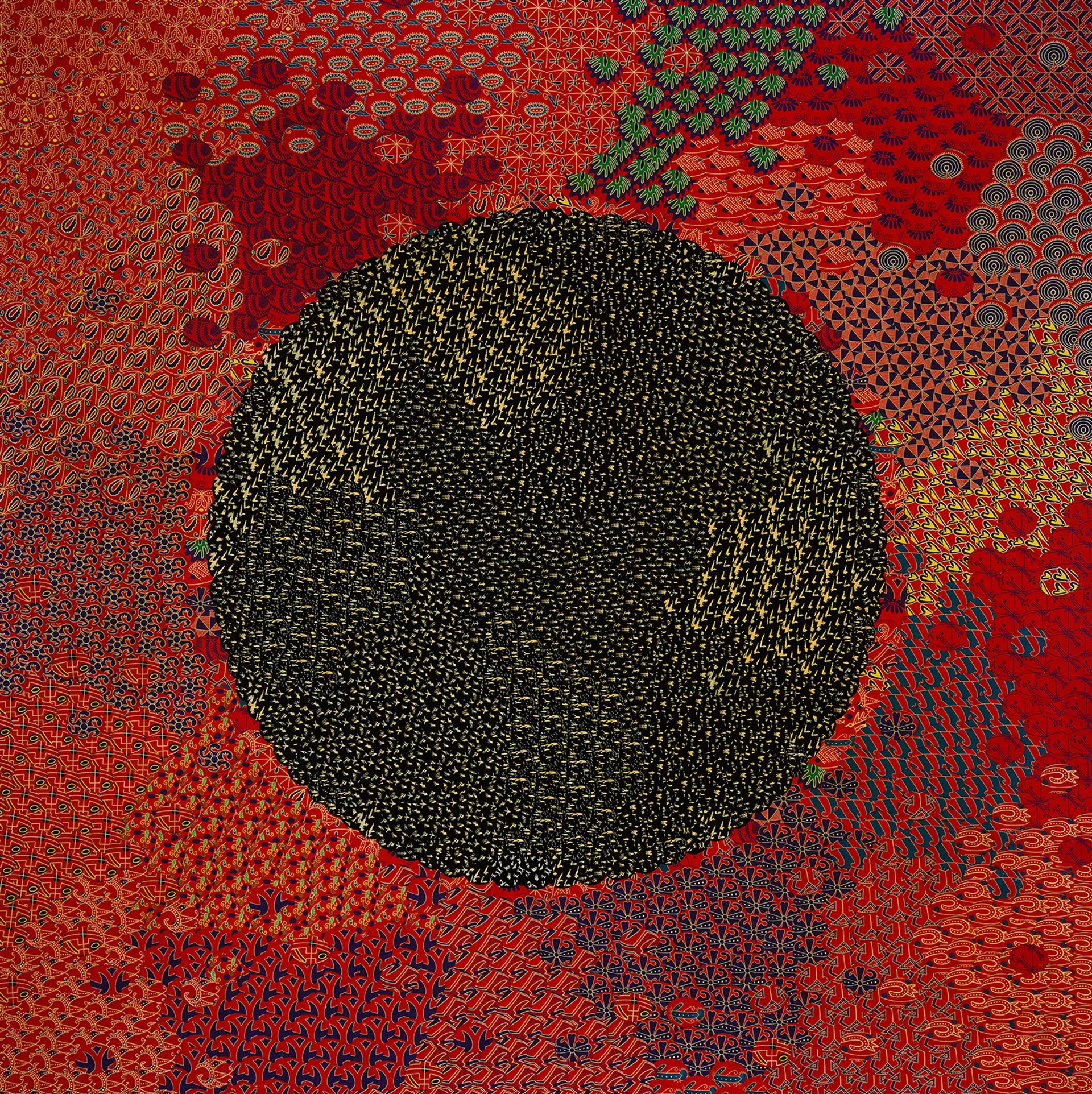 Oksana Mas's Black Sphere Against a Red Background, estimated at £8,000-£12,000, is being offered at Sotheby's Contemporary Discoveries online auction
