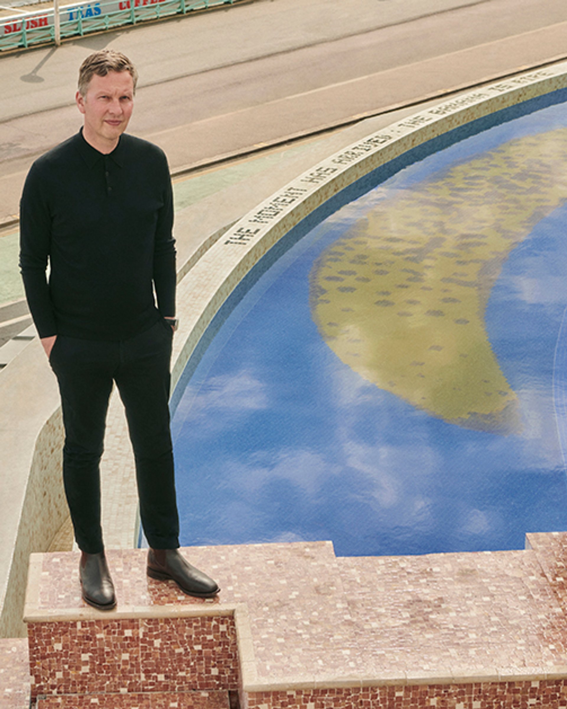 When David Shrigley was asked to create a work for a semi-circular swimming pool at Brighton Beach House, Soho House’s latest outpost on the south coast of England, the design was, he says, a “no-brainer”. As he puts it: “It’s an arc, so what’s it going to be? A banana. It can’t really be a cucumber as they are not bendy enough.”