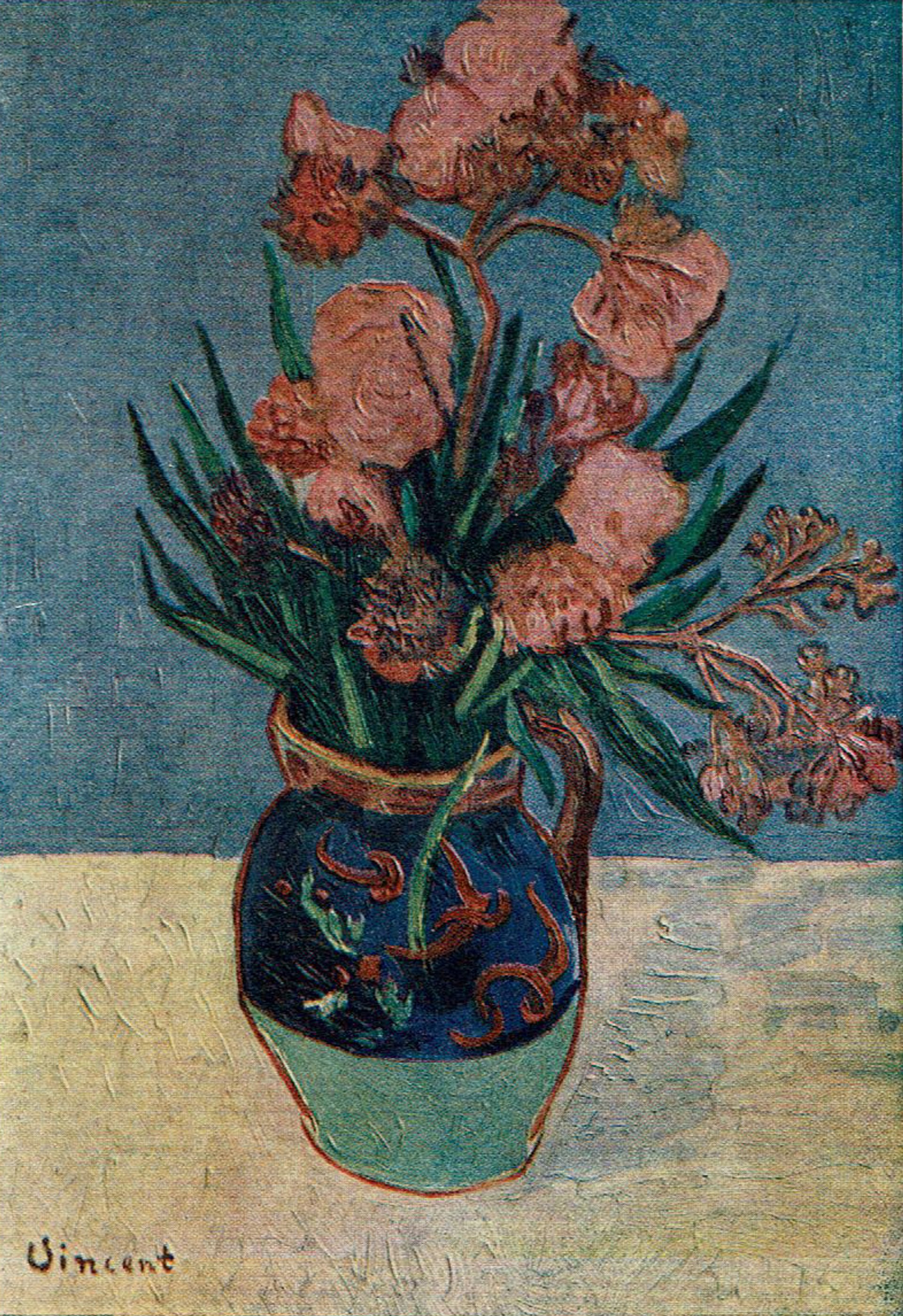 Still life with Oleanders (August 1888) was painted in Arles just a few days before Van Gogh’s famed Sunflowers. The oleanders were even depicted in a similarly shaped pot. Vincent gave the still life to a close friend, the postman Joseph Roulin, and it was later acquired by the Paris-based Bernheim Jeune gallery, by the First World War.