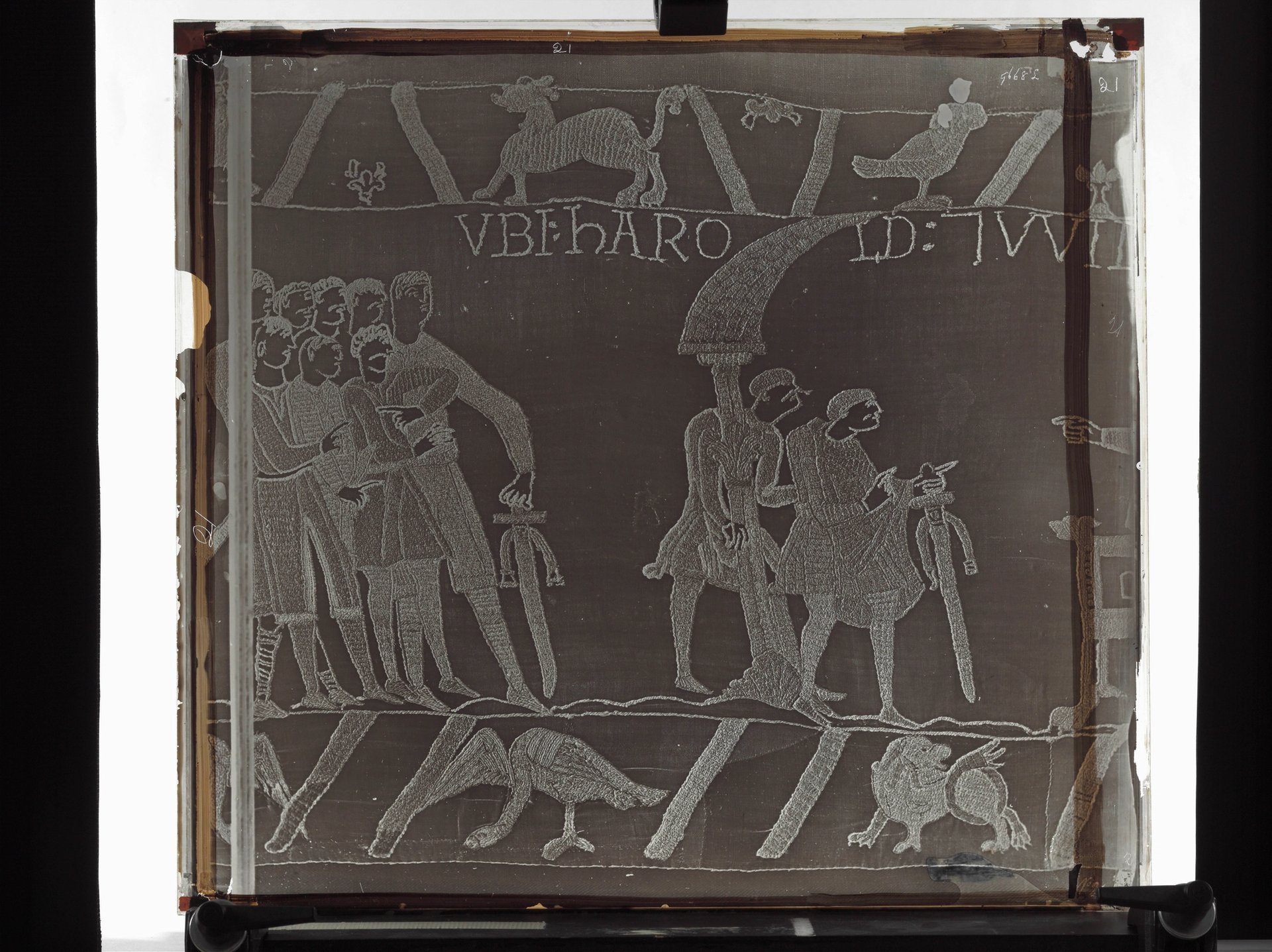 Glass plate negative of the Bayeux Tapestry by Edward Dossetter, ca. 1872 © Victoria and Albert Museum, London