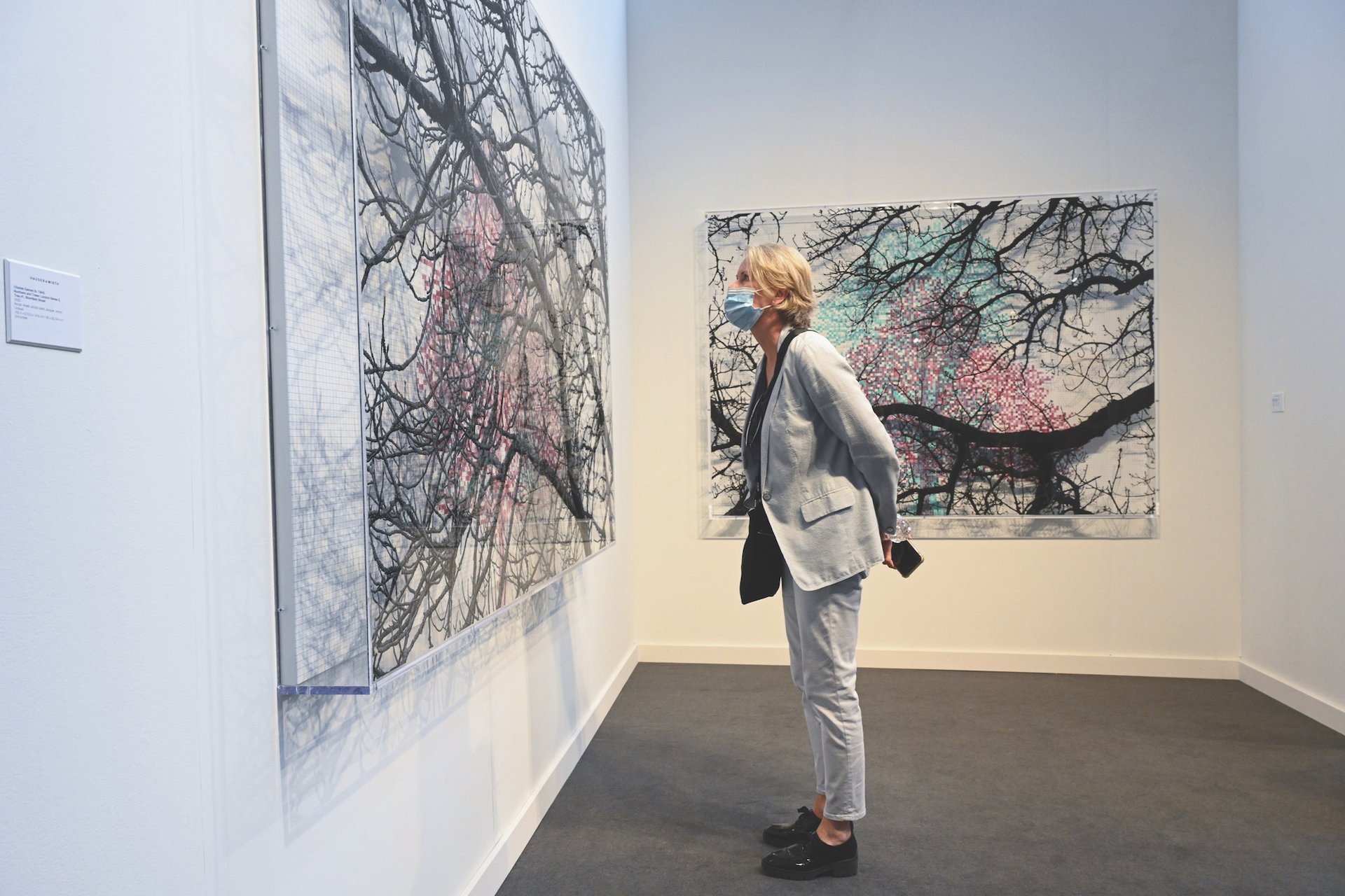 The Hauser & Wirth stand at Frieze New York 2022 at The Shed in Manhattan. Photograph by Casey Kelbaugh