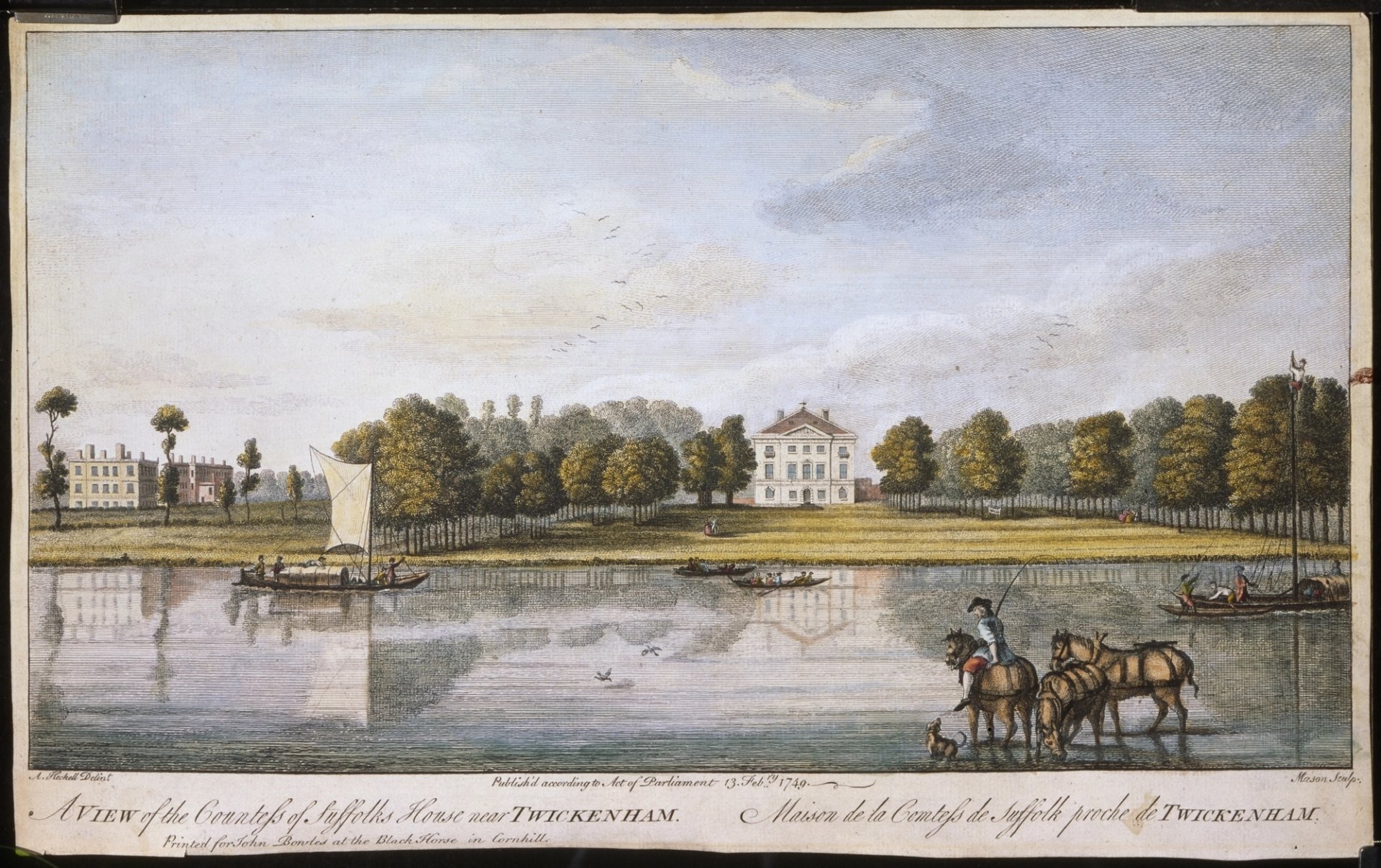 A coloured engraving of Marble Hill House, "The Countess of Suffolk's House", after Augustin Heckell (1749) Image: Historic England 1990. All rights reserved.
