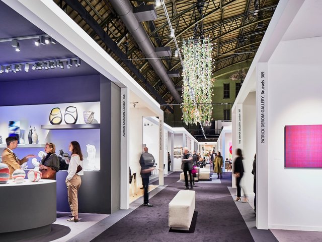 Some do so with tongue planted firmly in cheek, such as Albert Oehlen’s vending machine on Gagosian’s stand, which dispenses bottles of a limited-edition coffee-tea hybrid in a subtle nod to art-world commercialism and persistent global supply chain issues. Others, like Pace’s solo stand of new works by the Morocco-born, Switzerland-based Latifa Echakhch, feel more resolutely anchored in the present. Based on images by her friend, the photographer Sim Ouch, Echakhch’s large-scale frescoes depict once-familiar nightlife scenes from New York’s Lower East Side, of skinny-jean-clad partygoers mugging for the camera.
