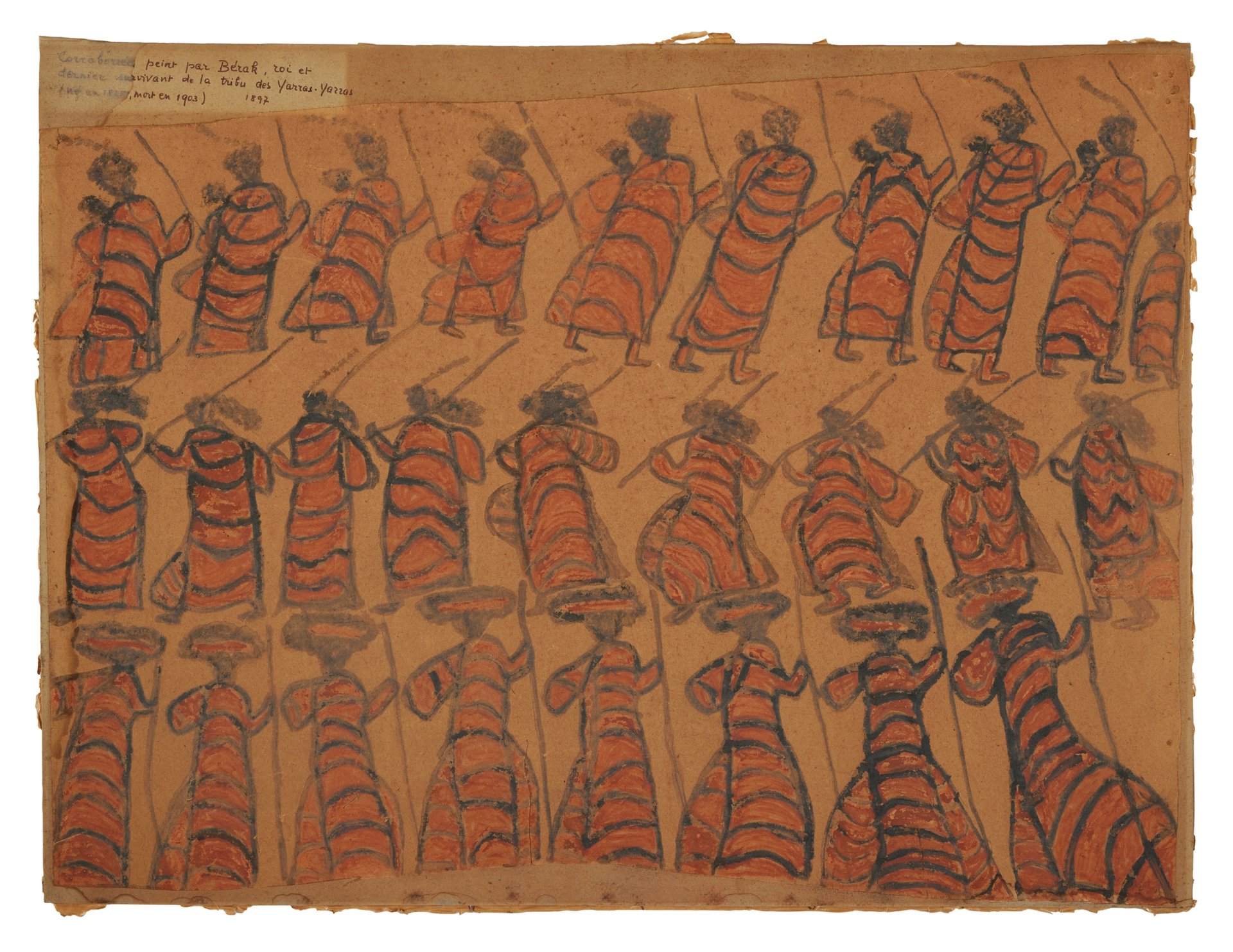 Barak is arguably one of the most significant Australian Aboriginal figures of the 19th century, and one of a handful of recorded artists. Born before the arrival of white settlers in Victoria, Barak experienced firsthand the devastation of colonialisation and the destruction of a traditional way of life. As a young man he witnessed the signing of a disputed treaty between local clan leaders and John Batman, an opportunistic grazier and explorer, who murdered three Tasmanian Aborigines, before expanding his pastoral interests to Victoria.