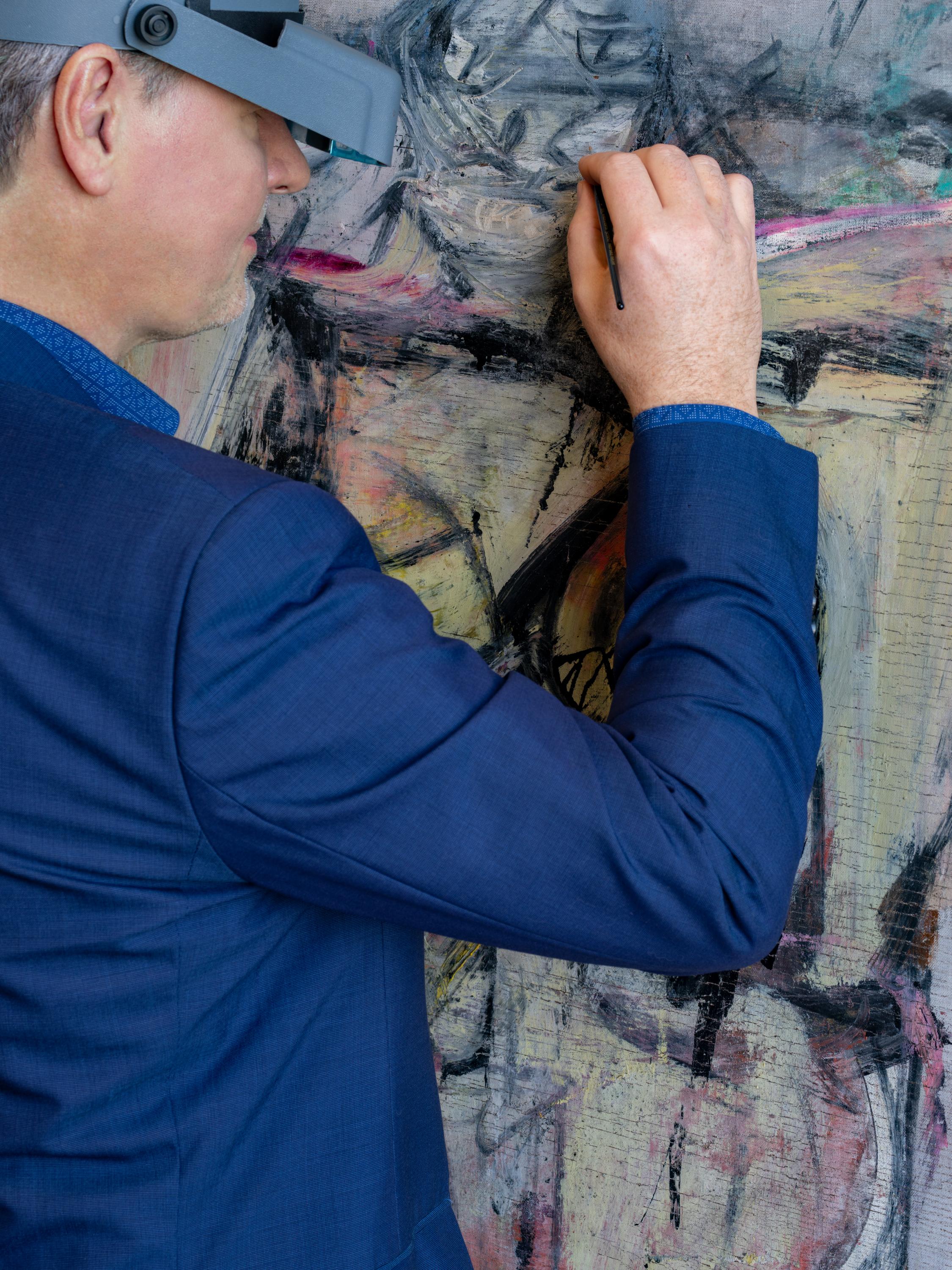 Getty's Senior Paintings Conservator Ulrich Birkmaier inpainting "Woman-Ochre" Artwork © 2022 The Willem de Kooning Foundation / Artists Rights Society (ARS), New York; Photograph © J. Paul Getty Trust