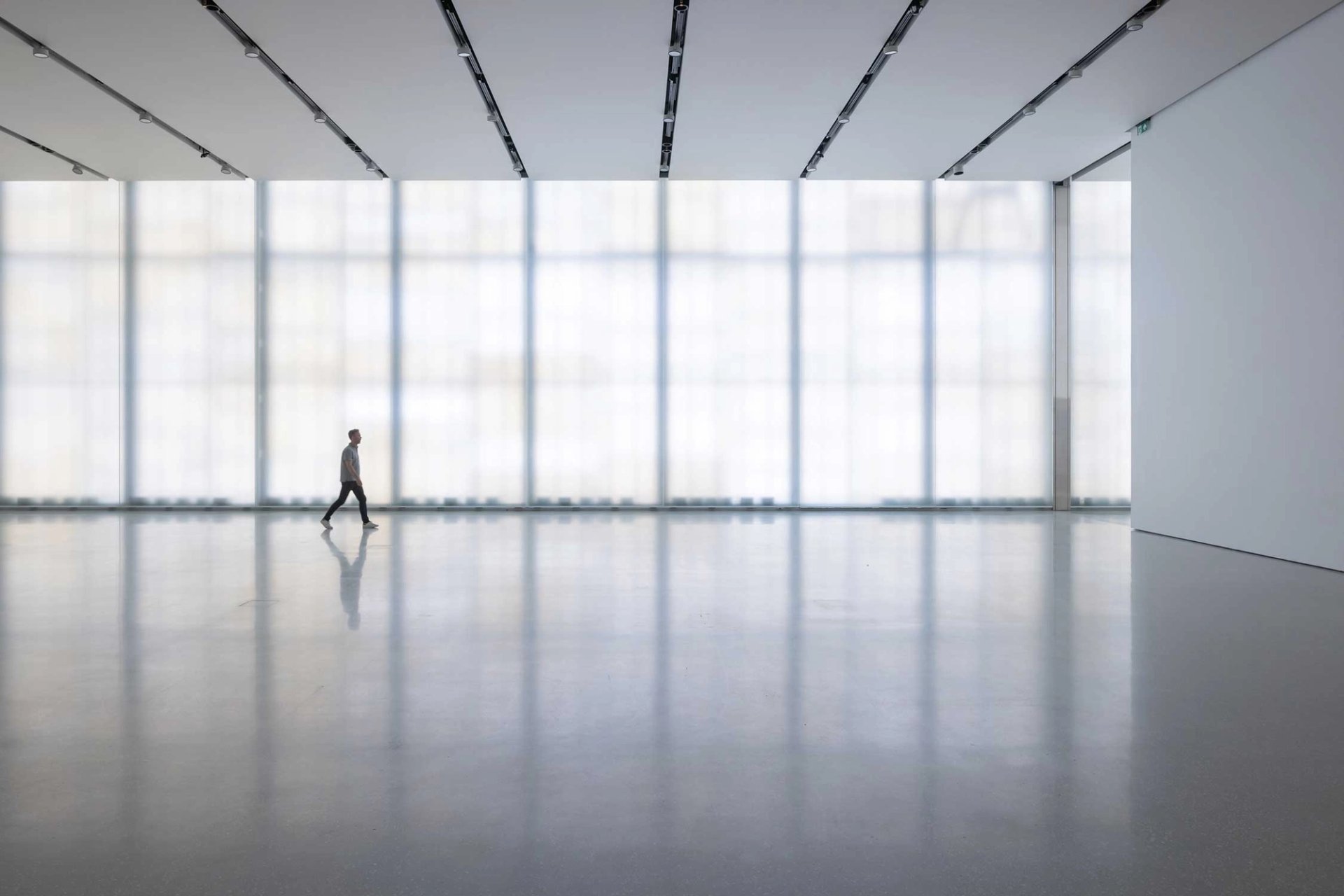 Behind the series of galleries that house the museum’s contemporary collection is a special room dedicated to works from the Fredriksen Family Collection. The large gallery space is highly adaptable, with fold-out walls and a curtain system that allows it to be easily divided into smaller spaces, for example to show video work. This is to allow the displays to adapt rapidly to changing situations and also to reduce the material waste associated with rebuilding exhibitions.