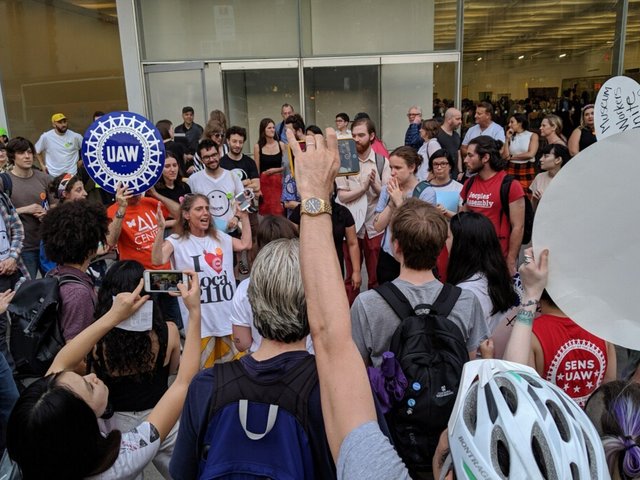 Maida Rosenstein, president of UAW Local 2110—which represents around 250 workers across several departments at MoMA—attended the protest to show support for Starbucks workers. “It’s a great time to be involved in the labour movement, with so many young workers organising,” she said. “Unionising is the only way for workers to have a democratic voice in the workplace. It enables them to safeguard and better their workplace conditions. It’s the only thing that will give workers any power or leverage to push for better conditions.”