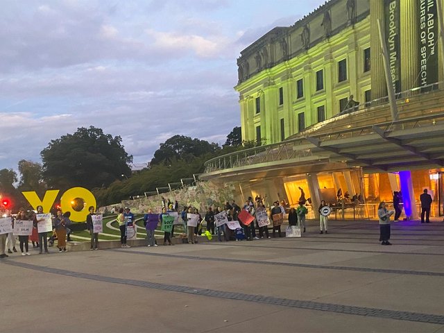 As the protest outside the MoMA gala wound down, Hobson had still not been seen entering or leaving the museum via the 53rd Street entrance, having presumably used a different entryway. Organisers were nevertheless in high spirits, having come together to spread their message.
