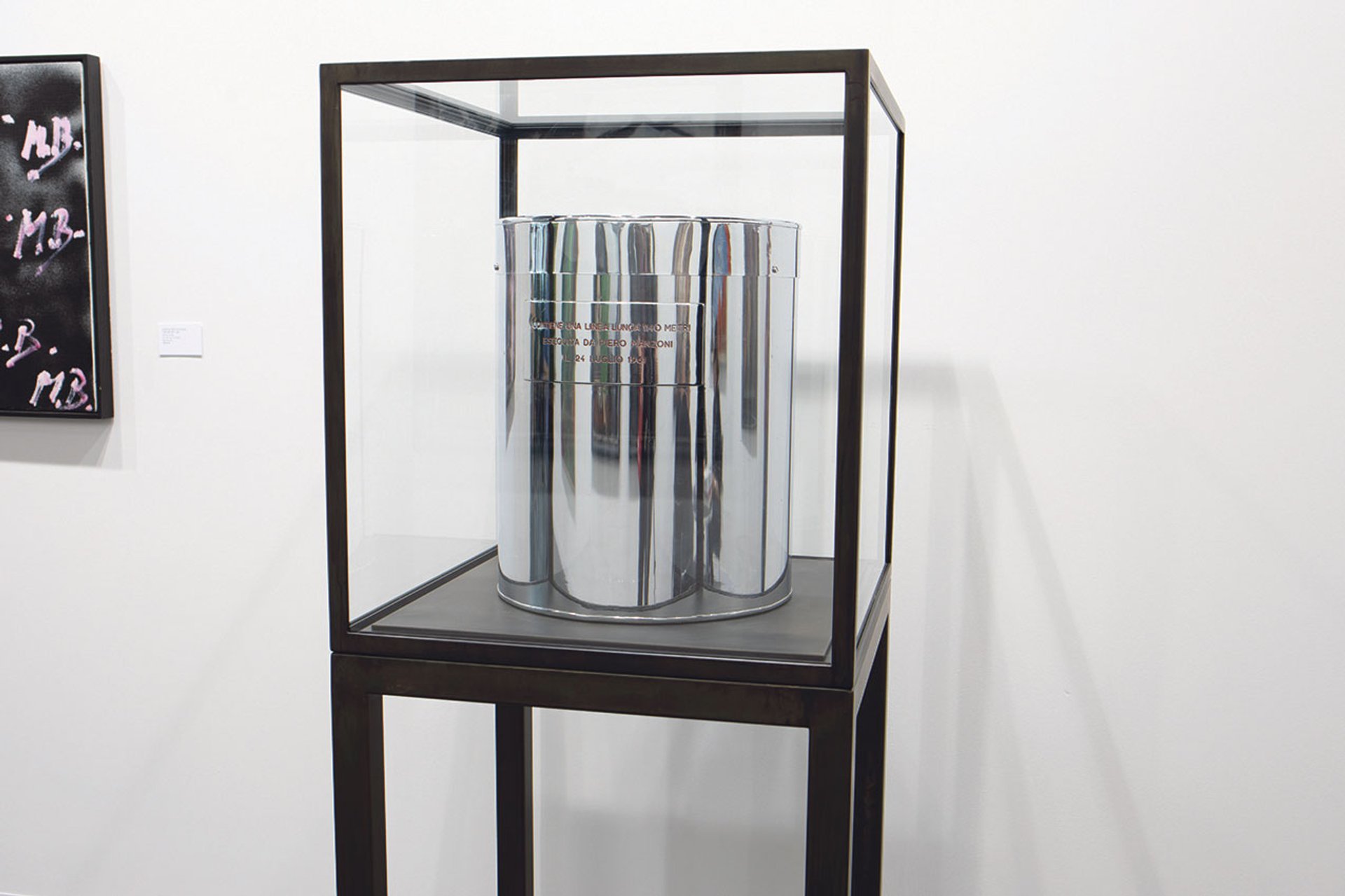 It might not be his usual (literal) shit, but fans of canned pieces by the Italian conceptualist Piero Manzoni should head to Michael Werner’s booth. One of his Linea works—for which he drew a continuous line on a single length of paper before rolling it up inside an opaque vessel—is on sale for a compact $6.5m. At 1,140m long, Linea m.1140 (1961) is the second-longest of these works in existence after the one at Denmark’s Herning Museum of Contemporary Art. Held in a private collection for the past 30 years, it is “one of the most intact from the series”, a gallery spokesperson says—so much so that when the Museum of Modern Art in New York restored its own Linea, it used this work as a reference.