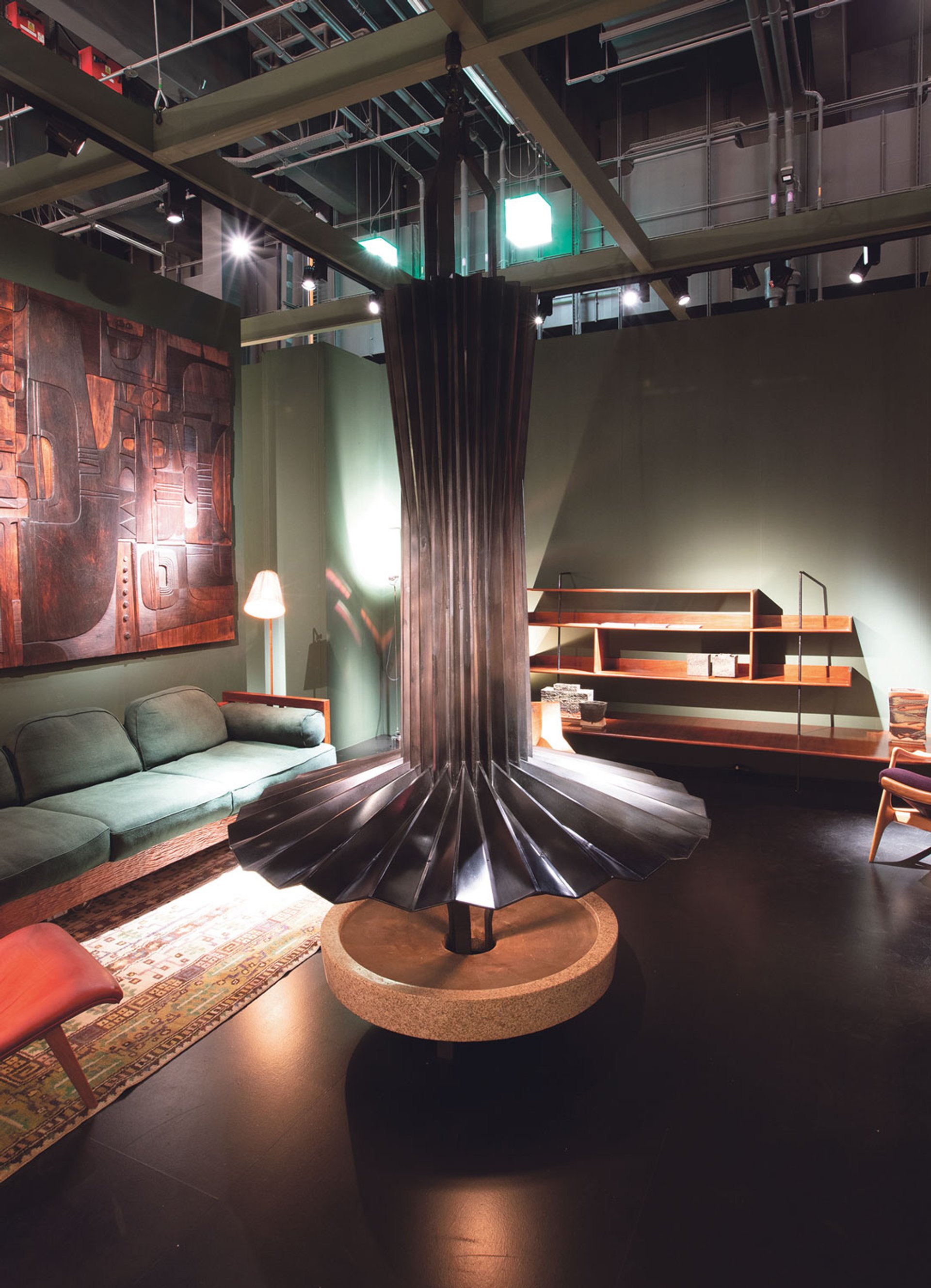 Few galleries have curated their space as carefully as Morentz. The Dutch gallery’s stand is like a cocoon of the most tasteful mid-century design. The gallery’s founder, Richard Kuipers, and his team have juxtaposed works by European, American and Brazilian designers including Hans J. Wegner, Paul Evans and Osvaldo Borsani. In the centre stands a fireplace made in 1959 by Italian design collective BBPR. This is one of the only times such a thing has been on sale at an iteration of Design Miami/Basel. It is an audacious inclusion—an art-infused caging of a destructive element.