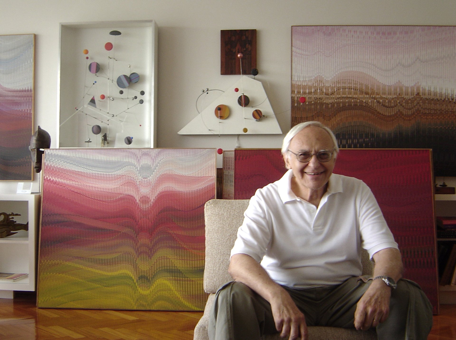 The artist Abraham Palatnik in his studio. Courtesy the artist's estate and Nara Roesler.