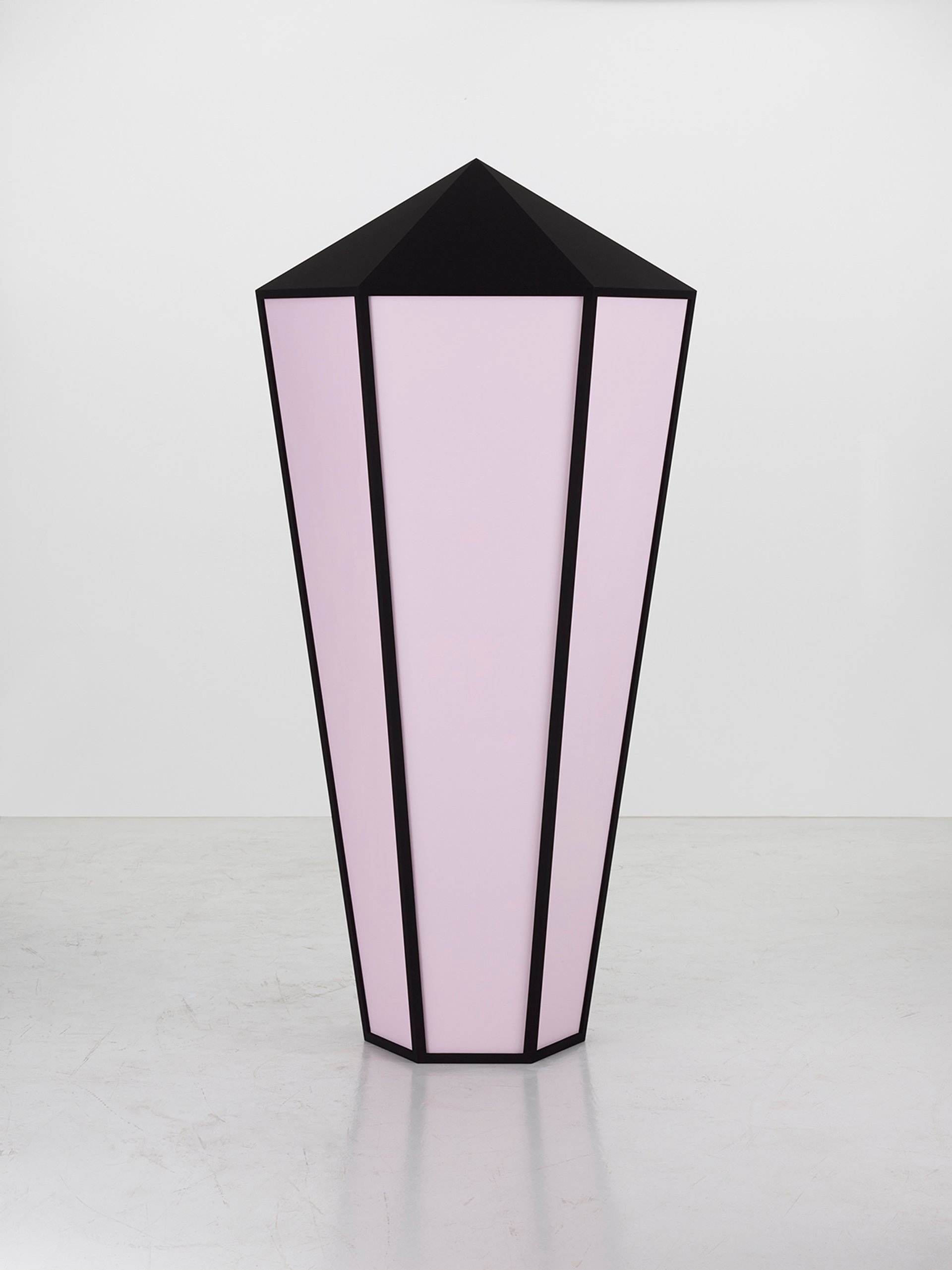 On the ground floor we find a sequence of works owned by the Collection and made in 2017 to be exhibited together: Ei/Egg, Laterne/Lantern and Schädel/Skull. Their equal monumental scaling and vivid colouring—typical of Fritsch’s decision-making process—demand a different kind of attention, while, seen together, these objects complicate one another’s meanings further. In this way the artist creates new narratives and atmospheres. There is also the push and pull of pieces that look like they can never have been made by hand and whose application of paint confuses our sense of light and time of day; the lantern, for example, seems to both emanate and absorb light.