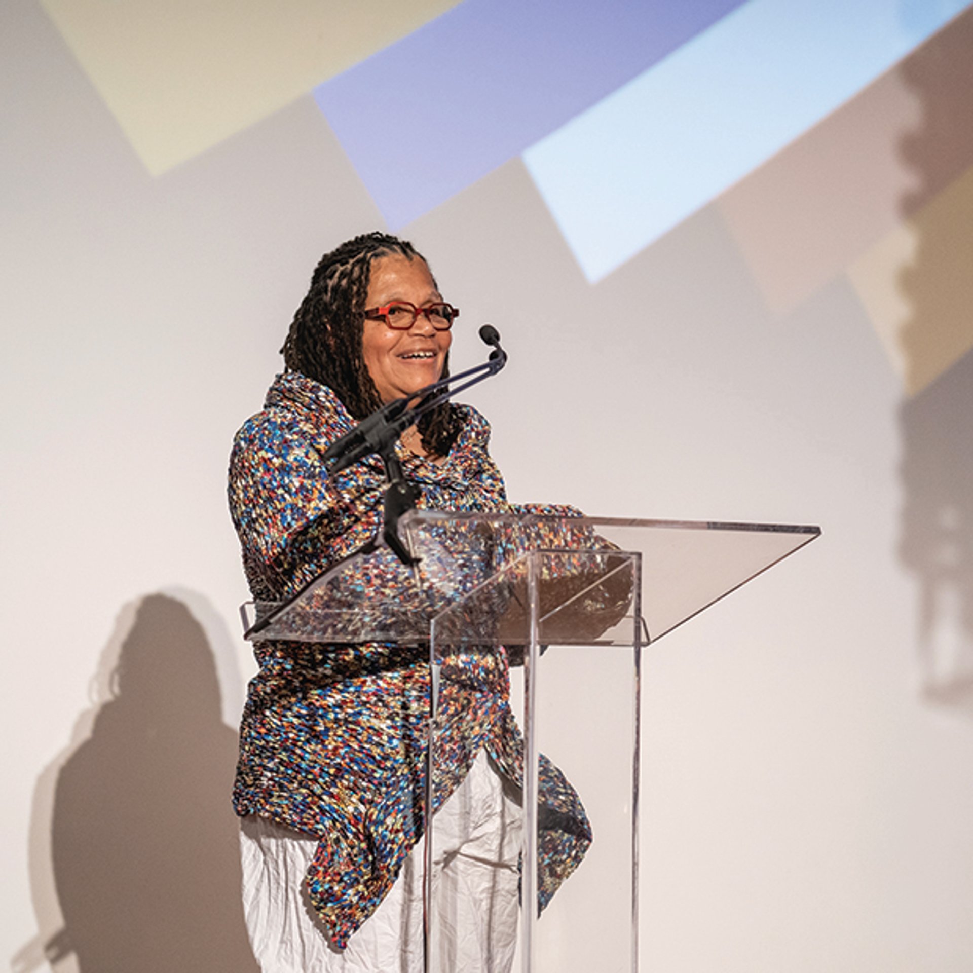Linda Goode Bryant at the speaker’s podium. Photo: Austin Donohue/MoMA