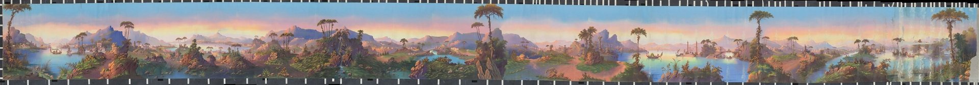 The mysterious roll of paper was unfurled in 2018, when the Rijksmuseum was transferring its off-site storage to a new location. “The only record we had was an inventory card from 1962, which briefly described the object as wallpaper,” Van Suylen says. “After extensive research and conservation, it now appears that it is in fact a fragment of a moving panorama. We have identified it as the longest remaining part of what was known as the Reuzen-Cyclorama [giant cyclorama] or Cyclorama Reichardt, named after its German owner.”