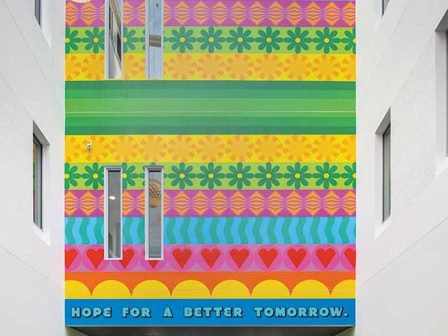Hospital Rooms’s first project was in 2016 in the Phoenix Unit, a rehabilitation unit for people with a diagnosis of schizophrenia in south-west London. Artists such as Gavin Turk and Nick Knight and art collective Assemble were commissioned to help transform the clinical walls of Springfield University Hospital in a model that has propelled the organisation across the country, and even internationally.