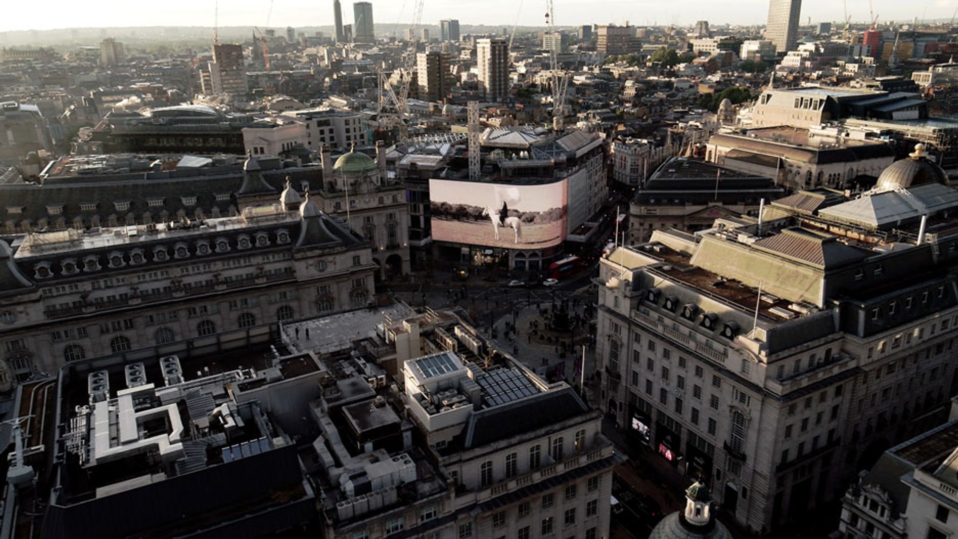 The Hero by Marina Abramović at Piccadilly Lights © Circa