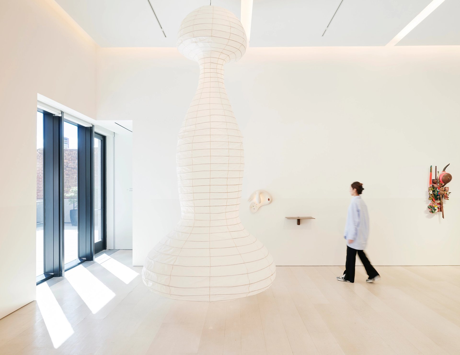 “I am looking into the corners of people’s studios or to the margins of art history to find synchronistic but unexpected things to share,” Shechet told The Art Newspaper. A functional paper, wire and electric bulb sculpture by Benglis recalls Noguchi’s light pendants a few steps away with its magnesite, plastic and wood wall sculpture with electric components.