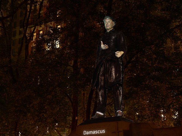 Gaines unveiled Chapter One of the serial project in Times Square last week (13 July). The work includes an act in two parts: a site-specific sculptural installation and a performance. The sculptural work, titled Roots, comprises seven inverted American Sweetgum trees, a species once native to the area, that are dried and painted to haunting effect. Backgrounded by a dizzying array of LED-branded architecture, the work analogises the pervasive repercussions of America’s legacy of cultural displacement and violent subjugation of property for capital gain.