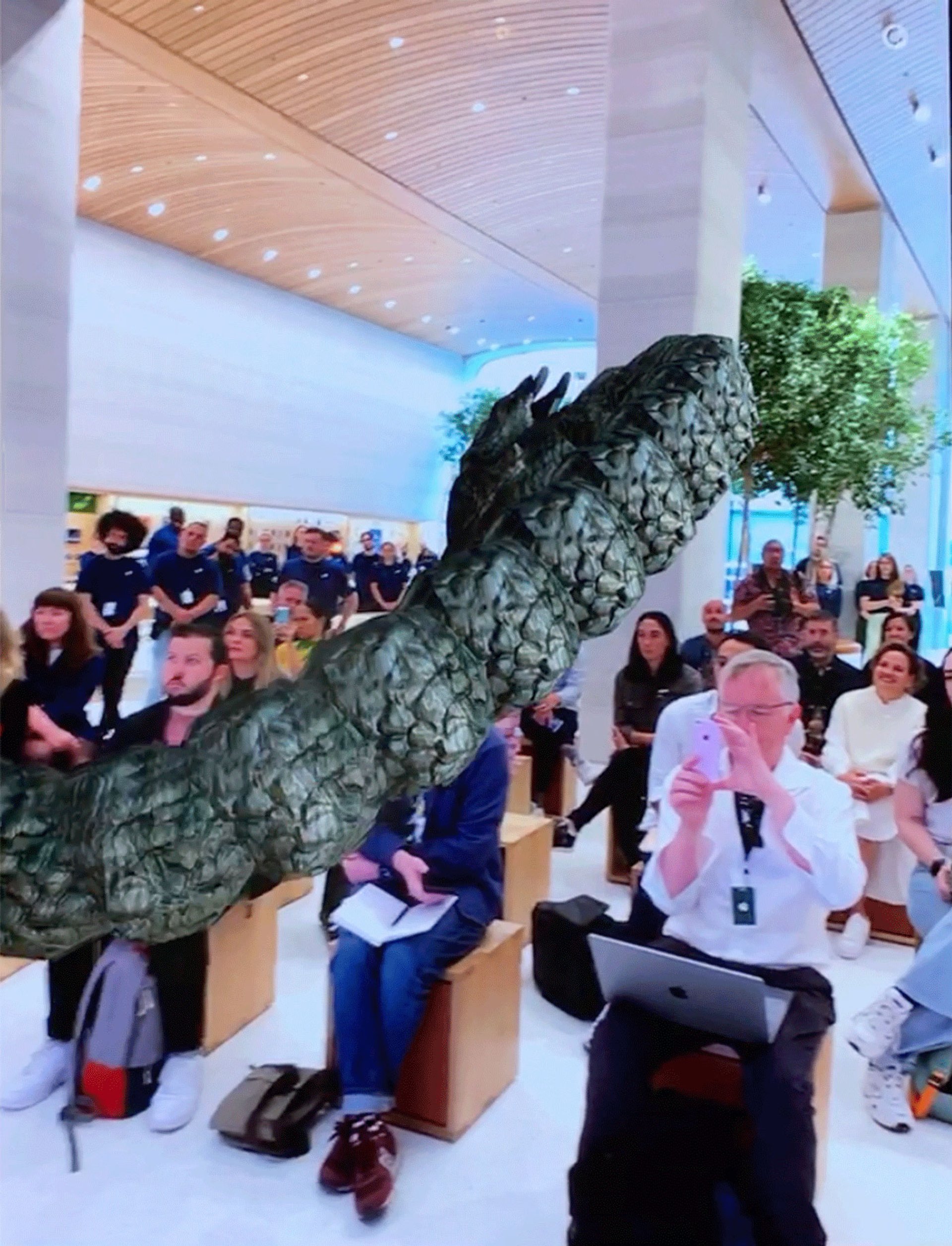 One of the battling Blake-inspired serpents in the launch demo of United Visions at the new Apple Store in Brompton Road, London Louis Jebb