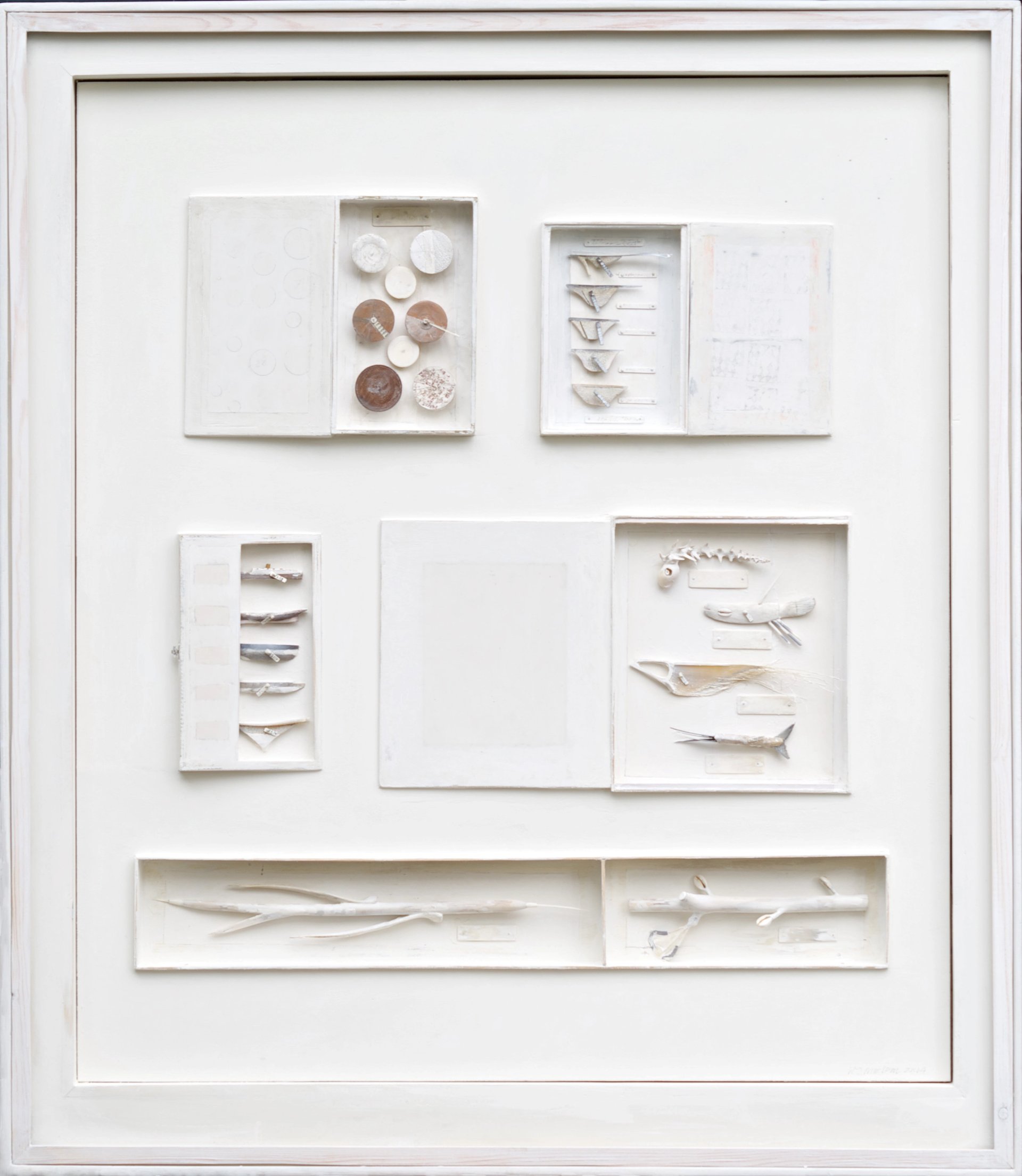A similar sense of memory and time’s passage runs through Will Maclean: Points of Departure (until 2 October) at City Art Centre. Perhaps best-known for his wall constructions, the Scottish artist also makes drawings, prints, sculptures, video art and installations, all of which are rooted in the history of the Scottish Highlands. Maclean’s passion for the local landscape shines through in the care and attention he affords to found objects, among them a framed and glazed collection of seabird’s eggs. Glass display cases contain items that carry with them the tales and associations of their original existence. Collages, photos and diagrams are a visual record of nautical navigation techniques and fishing practices.
