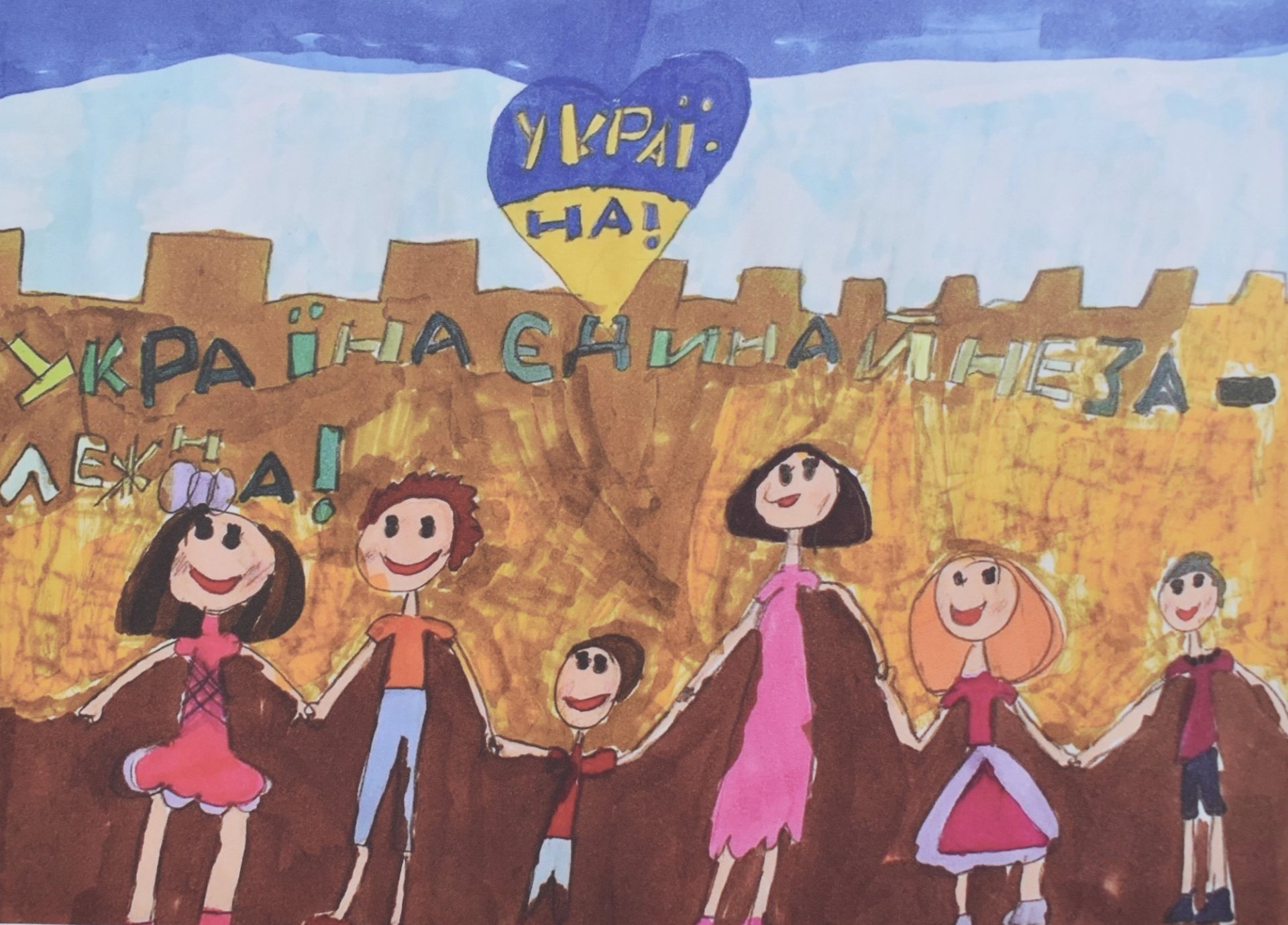 The show "Mum, I Don't Want War"—on display in 16 cities across Poland, including Warsaw and the border town of Przemyśl, a major port of arrival for Ukrainian refugees—emphasises the shared experiences of occupation, repression and resistance, as well as an enduring faith in victory. The drawings constitute a moving testimony of war, highlighting its particularly brutal impact upon society’s youngest members.