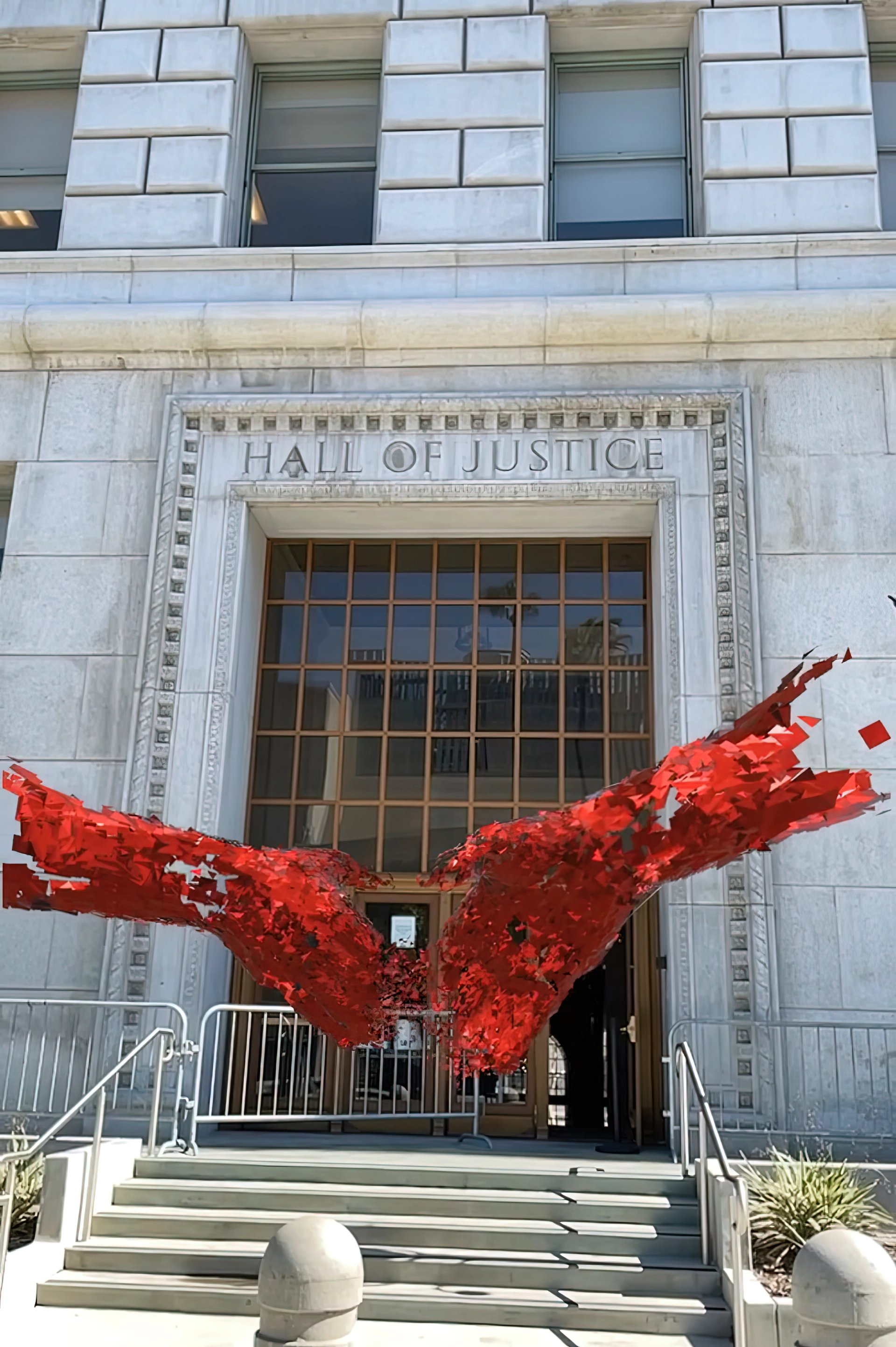 An AR animation still of Nancy Baker Cahill's Contract Killers (Judicial) (2021)