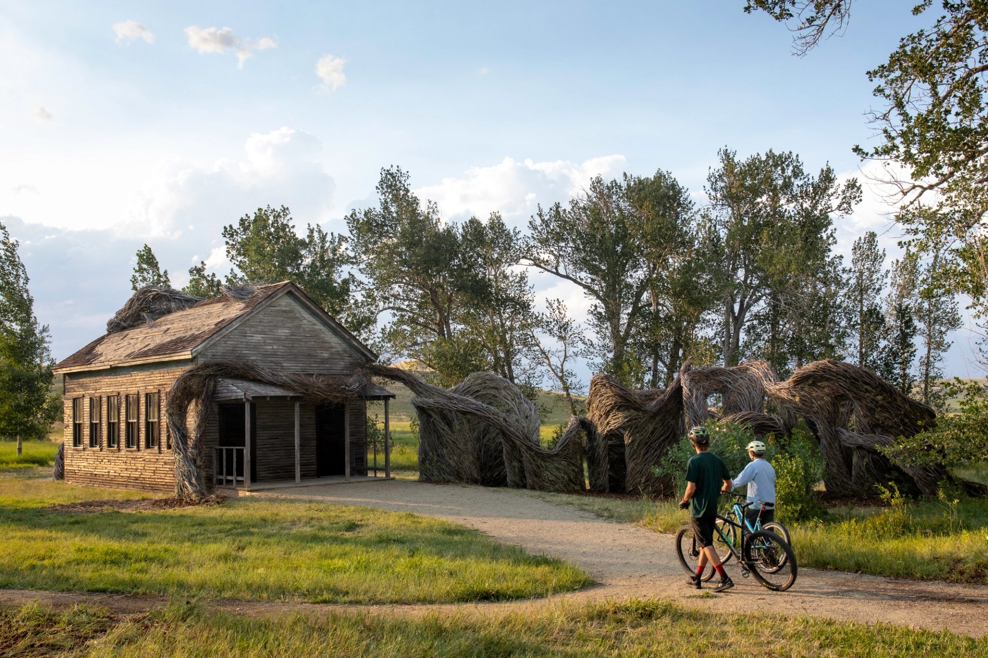 The Tippet Rise Art Center, a panoramic 12,500-acre outdoor sculpture and classical music centre in southcentral Montana, relaunches its seasonal programming this weekend after a two-year hiatus. Several sculptures have been added to the grounds, one of the most complex being a complement of the “stickwork” Daydreams (2015) by the American sculptor Patrick Dougherty. The site-specific sculpture, which engulfs a replica of a local frontier-era school, was first unveiled when the centre opened in 2016 and naturally weathered throughout the seasons. The artist has adjoined the installation with a new outdoor work titled Cursive Takes a Holiday (2022)—a nod to the piece’s original composition, which pours out from the architecture onto the exterior landscape.