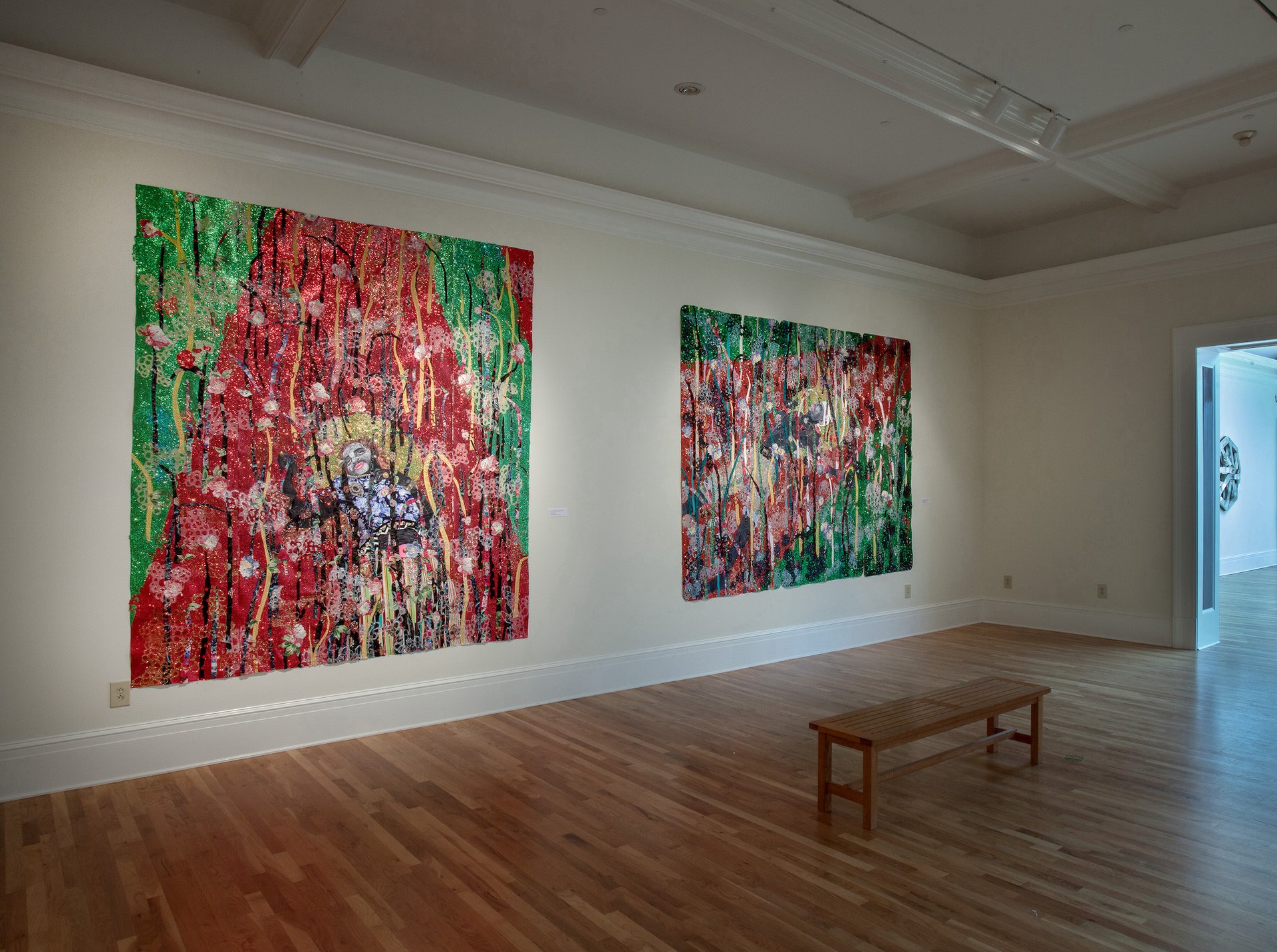 Works by Ebony G. Patterson on view during Prospect.3 at the Newcomb Art Museum Courtesy of the artist and Monique Meloche Gallery