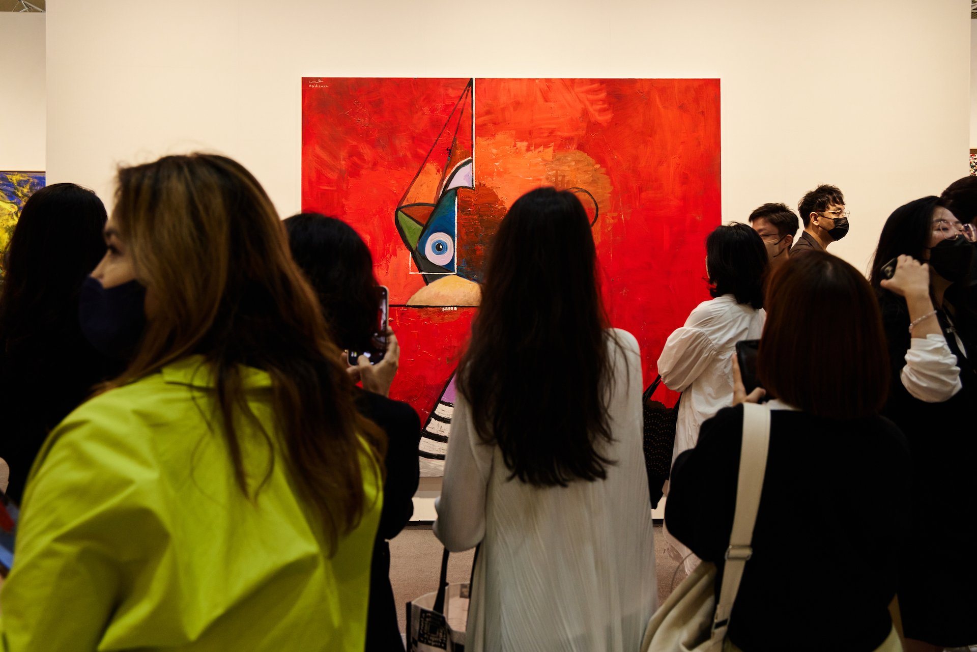 Visitors to Frieze Seoul crowd around a George Condo painting in the Hauser & Wirth stand Photo by Lets Studio. Courtesy Lets Studio and Frieze.