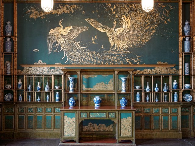 This summer, the Freer closed the gallery to conduct a major conservation project that was the largest in three decades. Conservators focused on cleaning all the painted and gilded surfaces but also reinforced the room’s magnificent shutters, which feature handpainted peacocks. Officially titled Harmony in Blue and Gold: The Peacock Room (1876-77), it will reopen on 3 September with an installation of ceramics that shows the room as it appeared when owned by the industrialist and museum founder Charles Lang Freer.