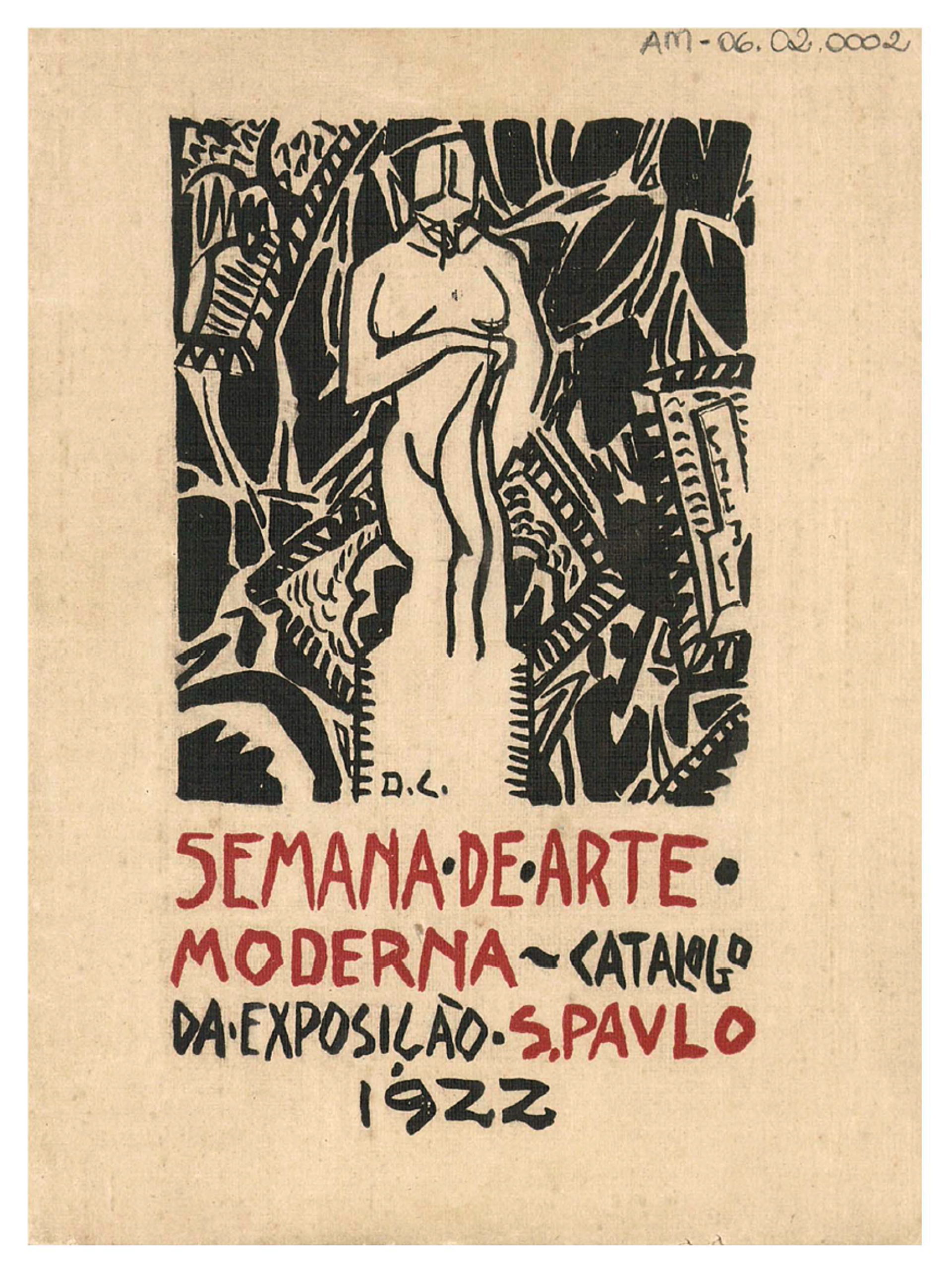 The catalogue cover illustrated by Emiliano di Cavalcanti for the Semana de Arte Moderna (Modern Art Week) event held at the Teatro Municipal in the city of São Paulo in 1922. Public domain.
